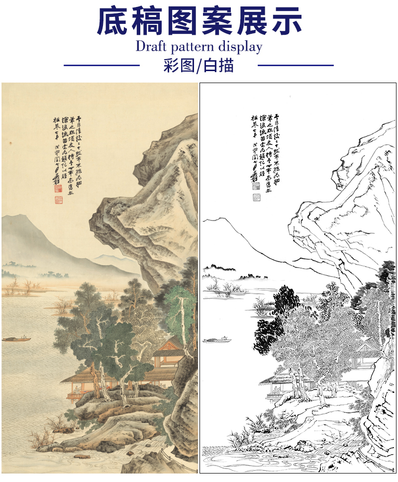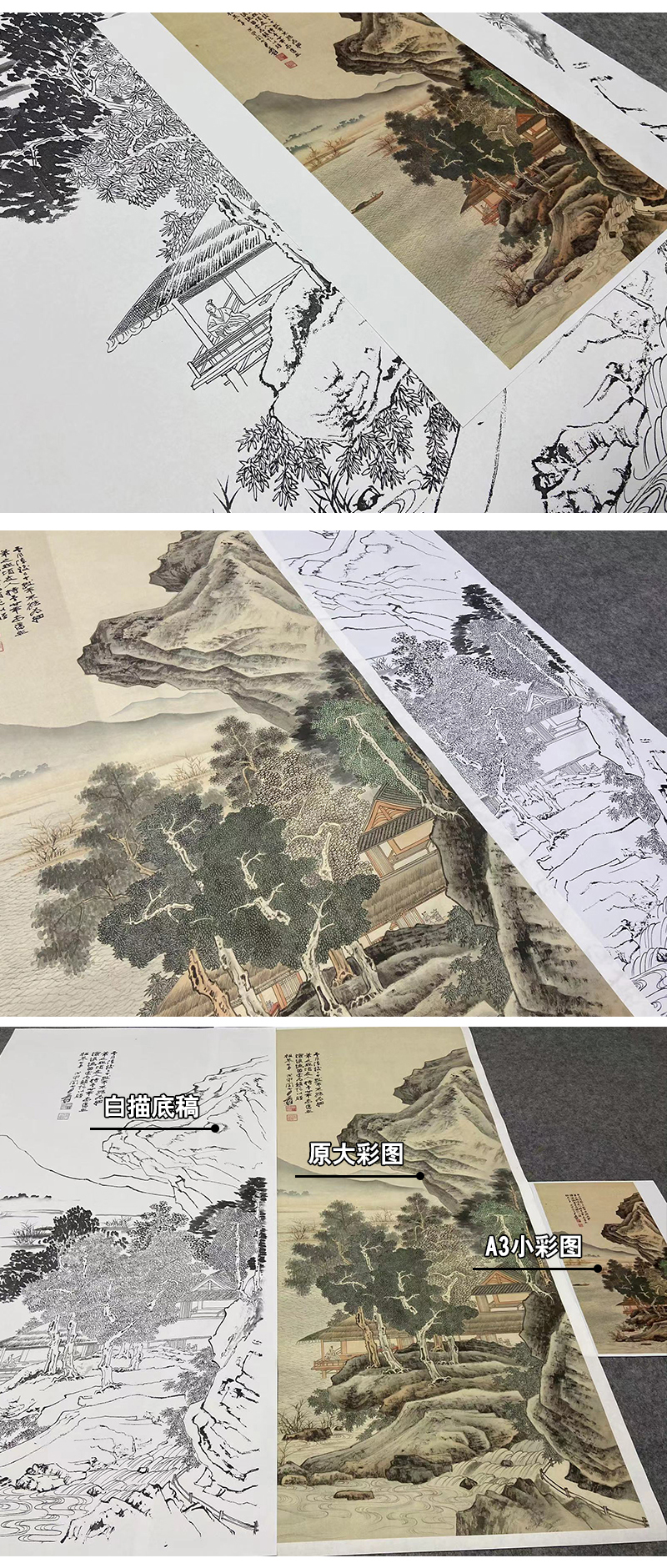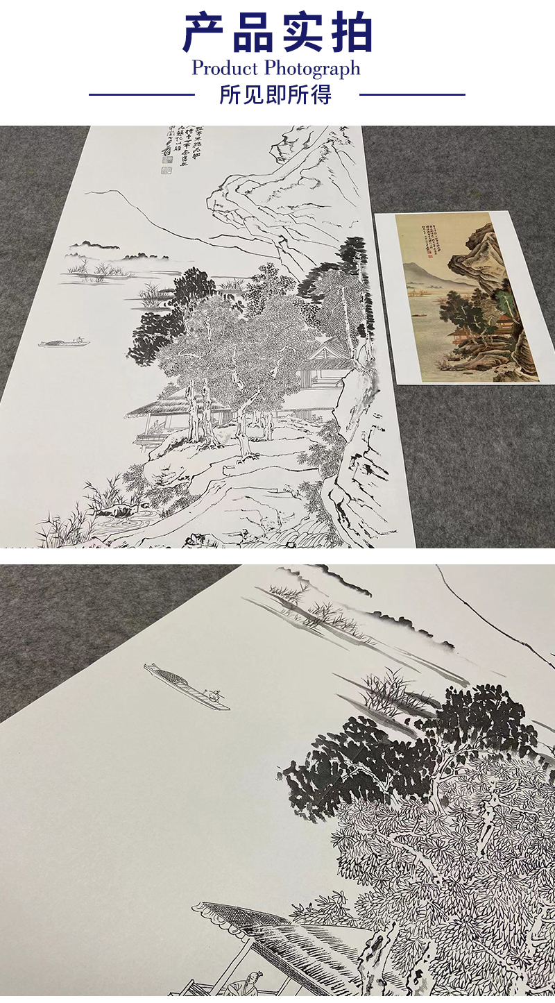 【大彩图】张大千工笔白描底稿《沧浪渔笛图》临摹高清打印稿QD01