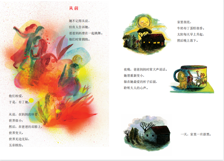 轻盈细腻的画风、简洁诗意的语言、富有深意的成长故事。用一个童话般的故事处理了孩子们的痛苦、孤独,以及他们对被抛弃和不再被爱的恐惧。