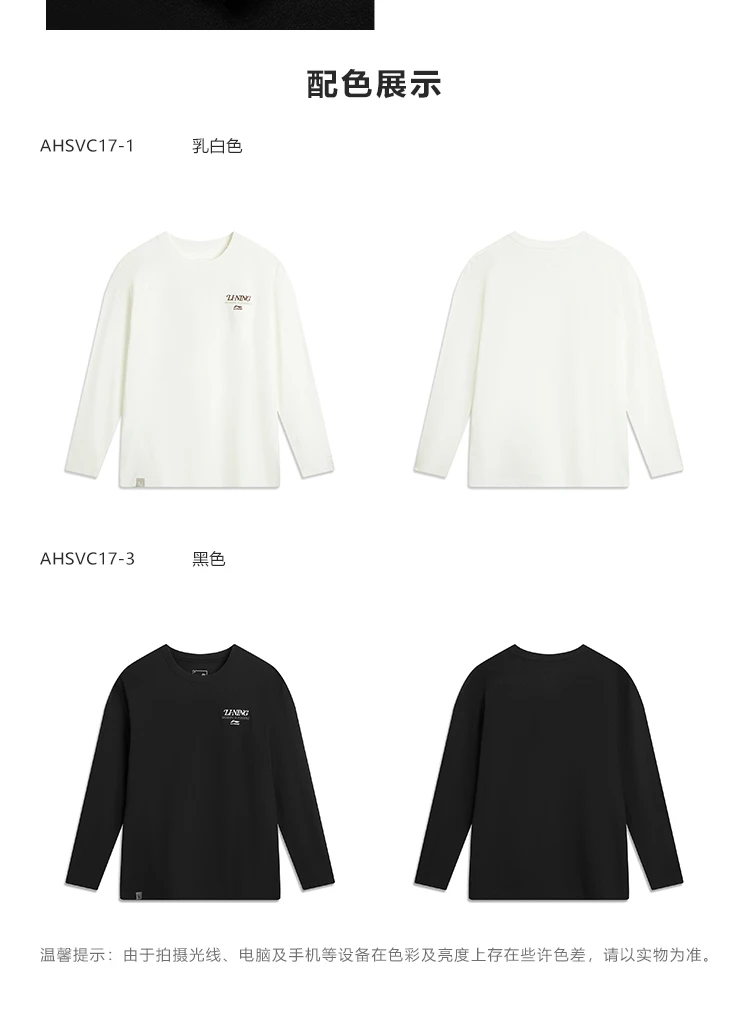 李宁男子冰感舒适吸湿排汗长袖文化衫AHSVC17