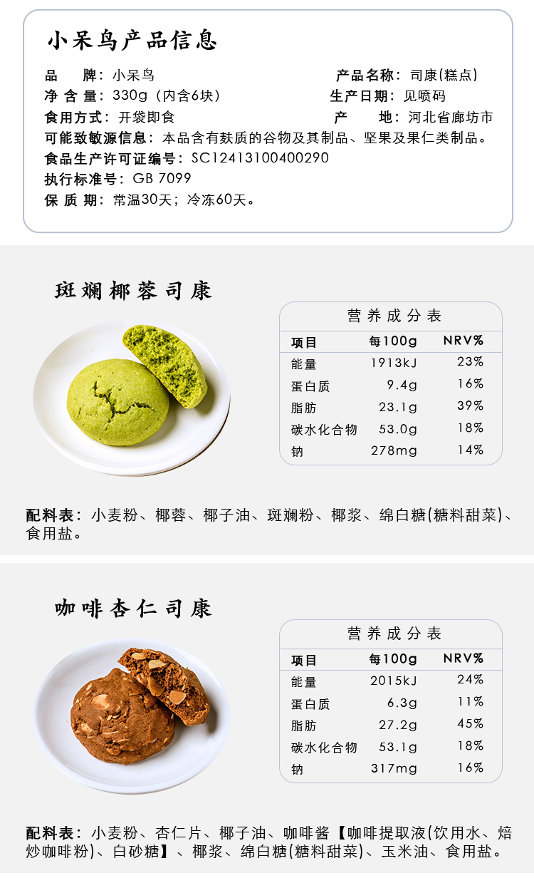 司康 | 咖啡杏仁/斑斓椰蓉6枚装 甜点零食下午茶 小呆鸟【小呆鸟系列满98包邮】