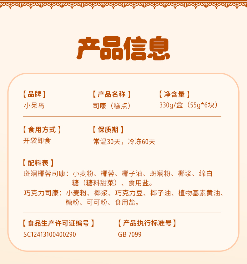 巧克力&斑斓椰蓉司康 | 55g*6枚/盒 英式甜点 零食下午茶 小呆鸟「小呆鸟系列满98包邮」
