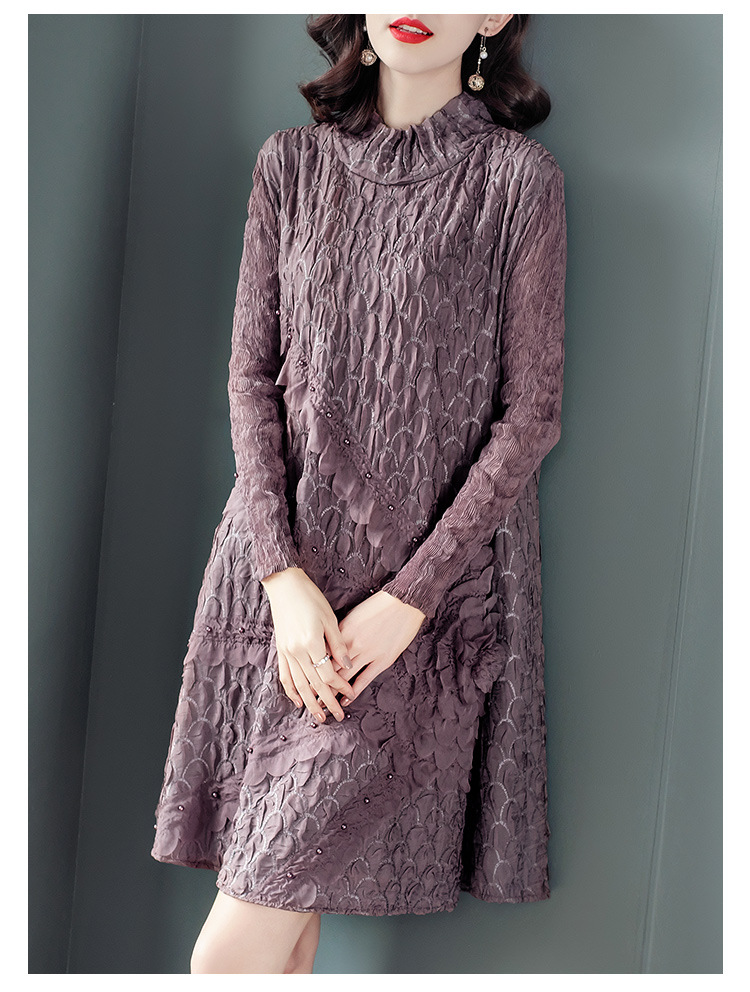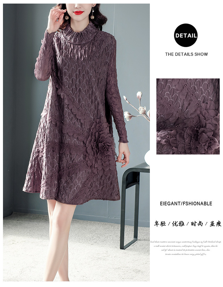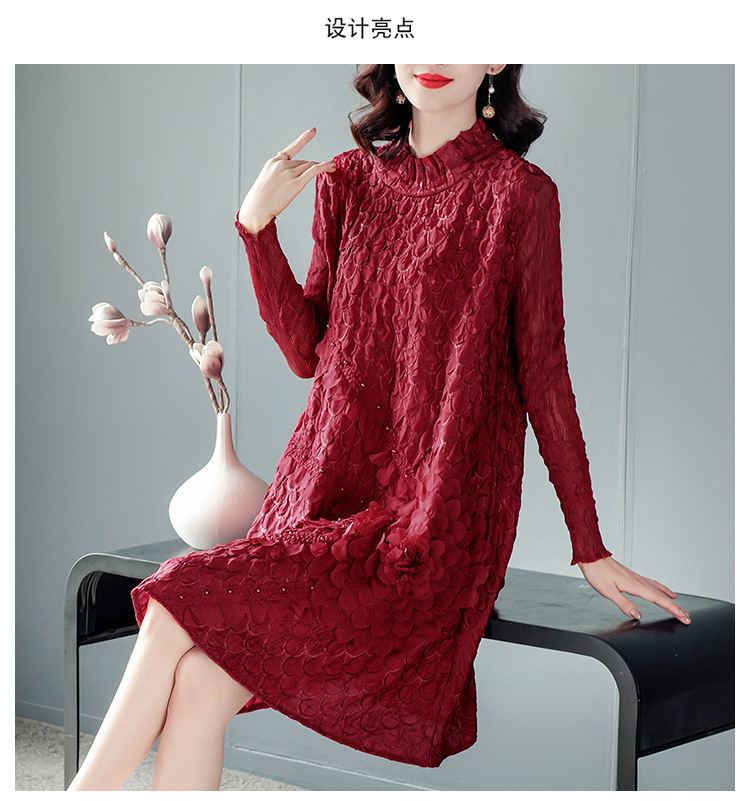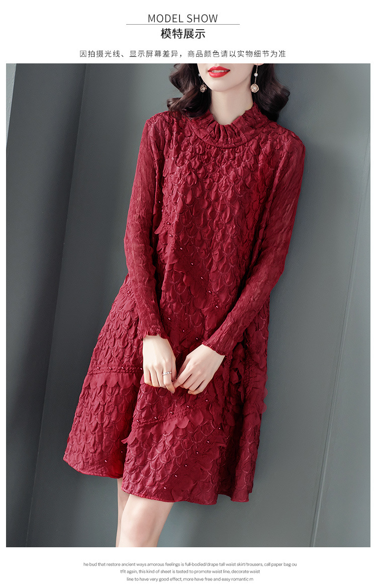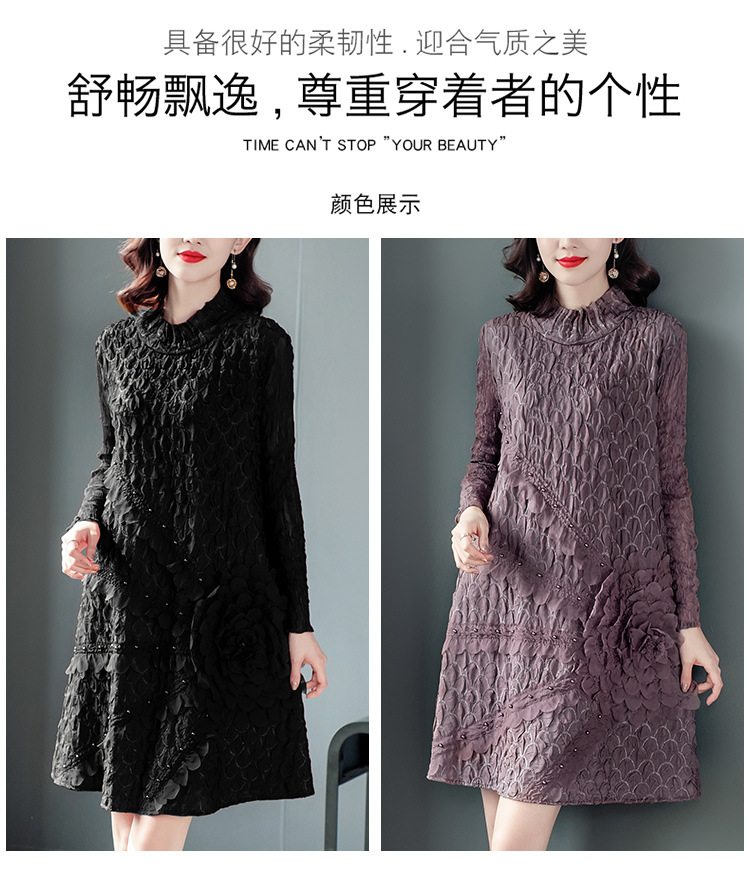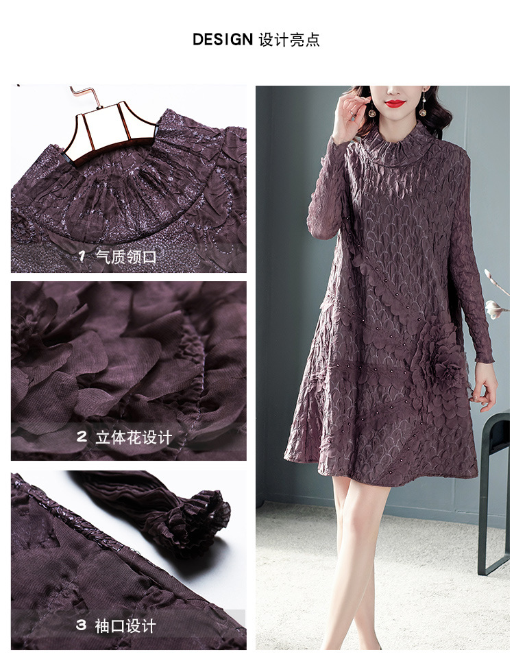 JN-K201111长袖A字裙2021春季新款钉珠洋气小个子三宅褶皱连衣裙大码K201111