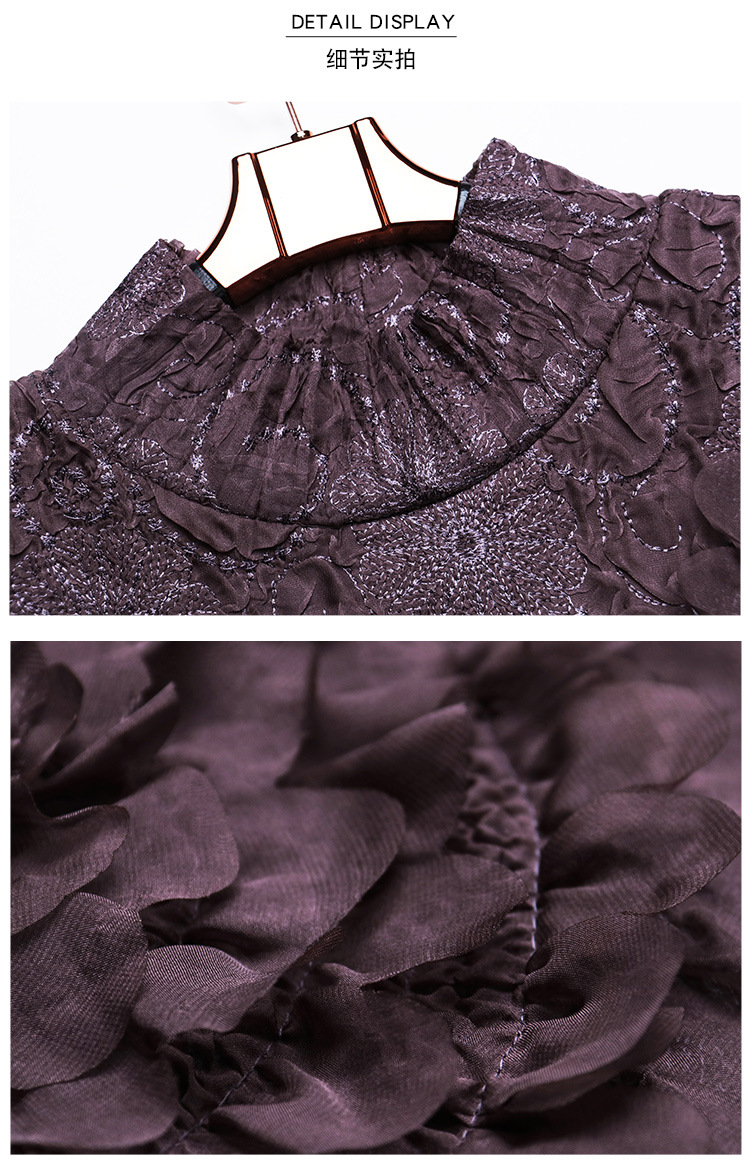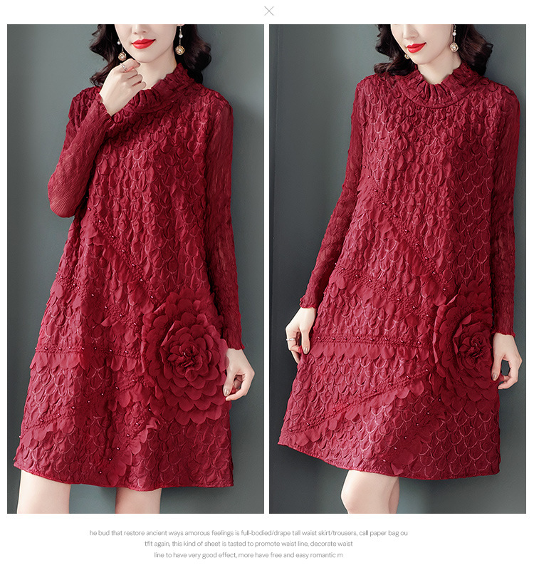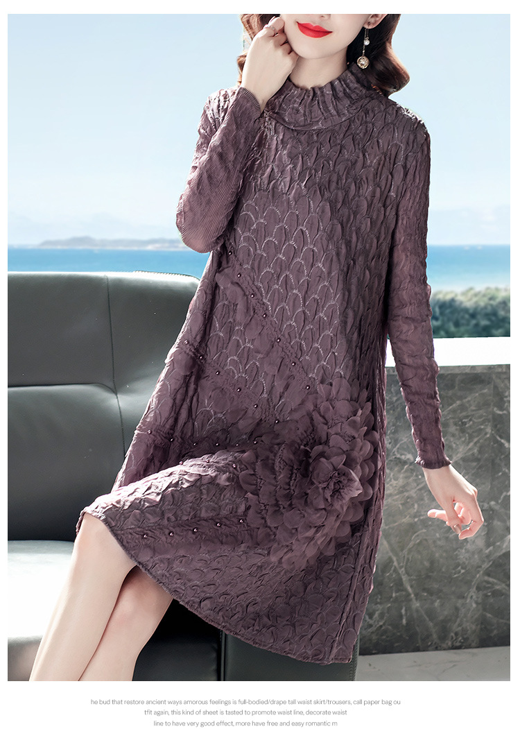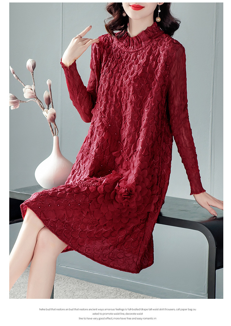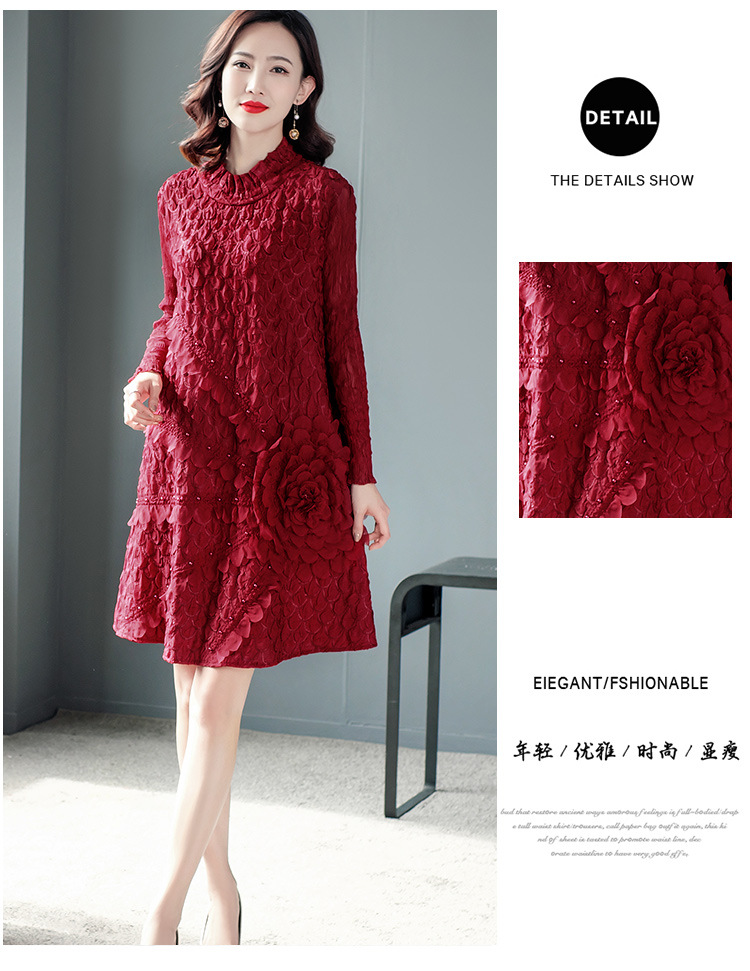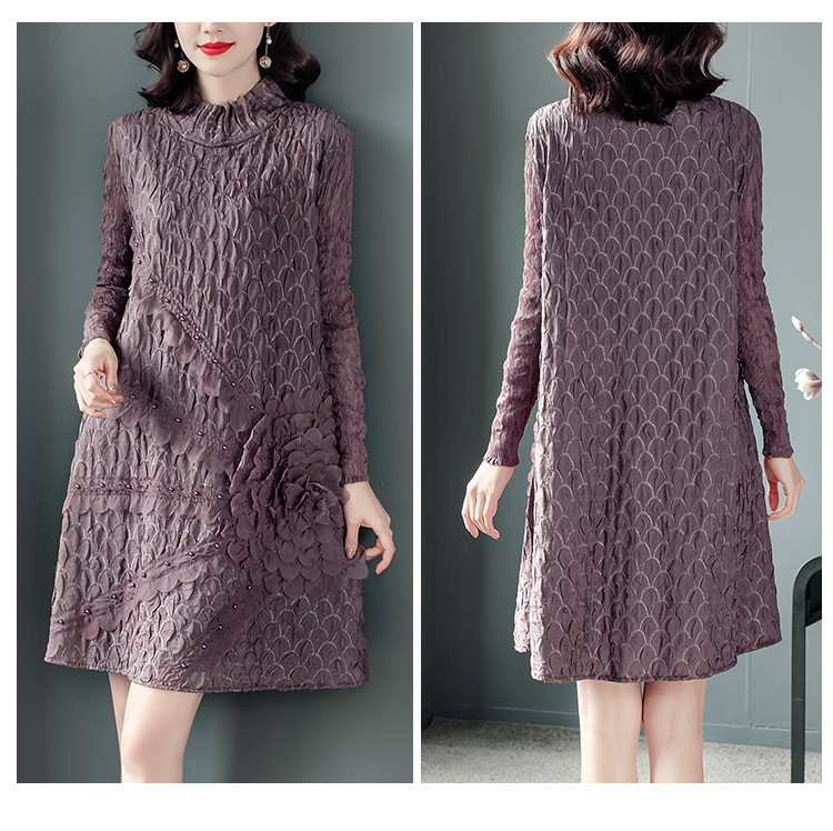 JN-K201111长袖A字裙2021春季新款钉珠洋气小个子三宅褶皱连衣裙大码K201111