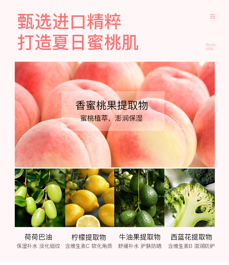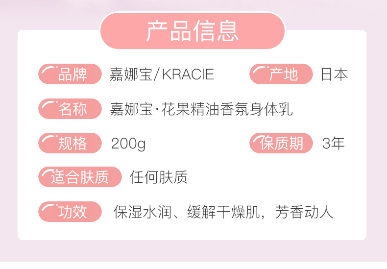 嘉娜宝Kracie肌美精身体乳200g 水蜜桃保湿香体嘉宝娜桃子味润肤乳