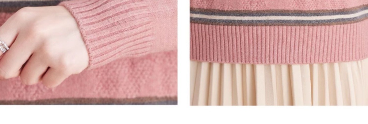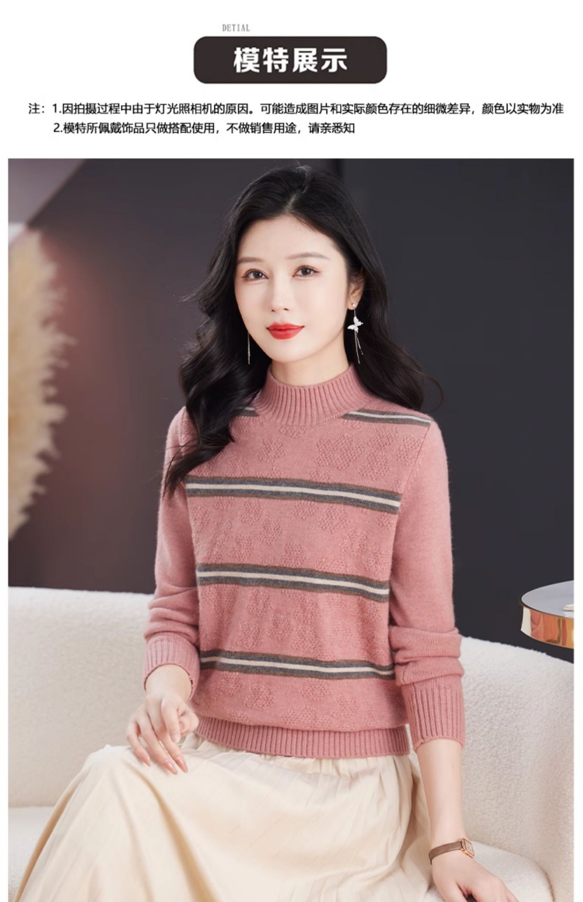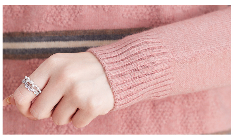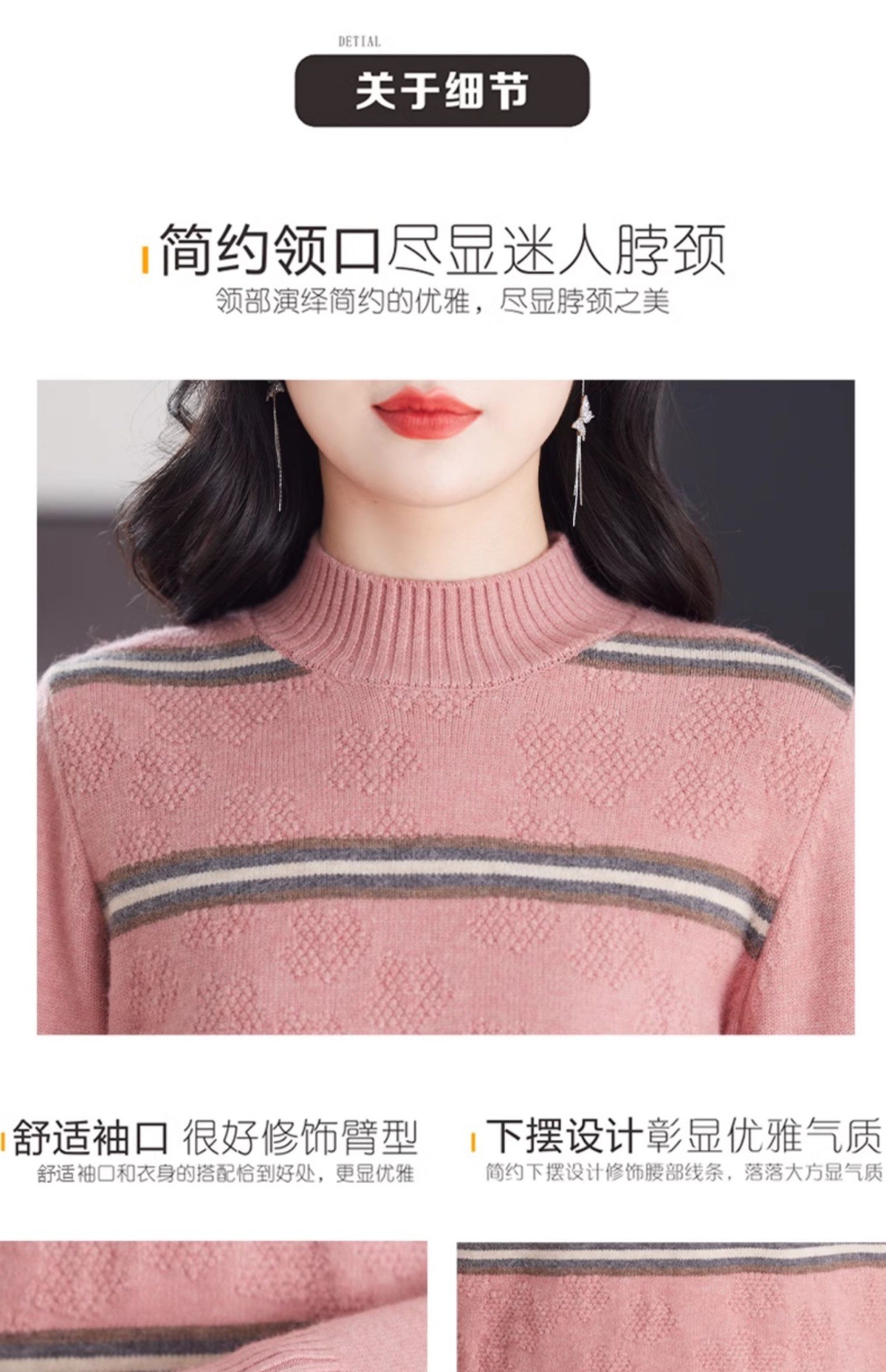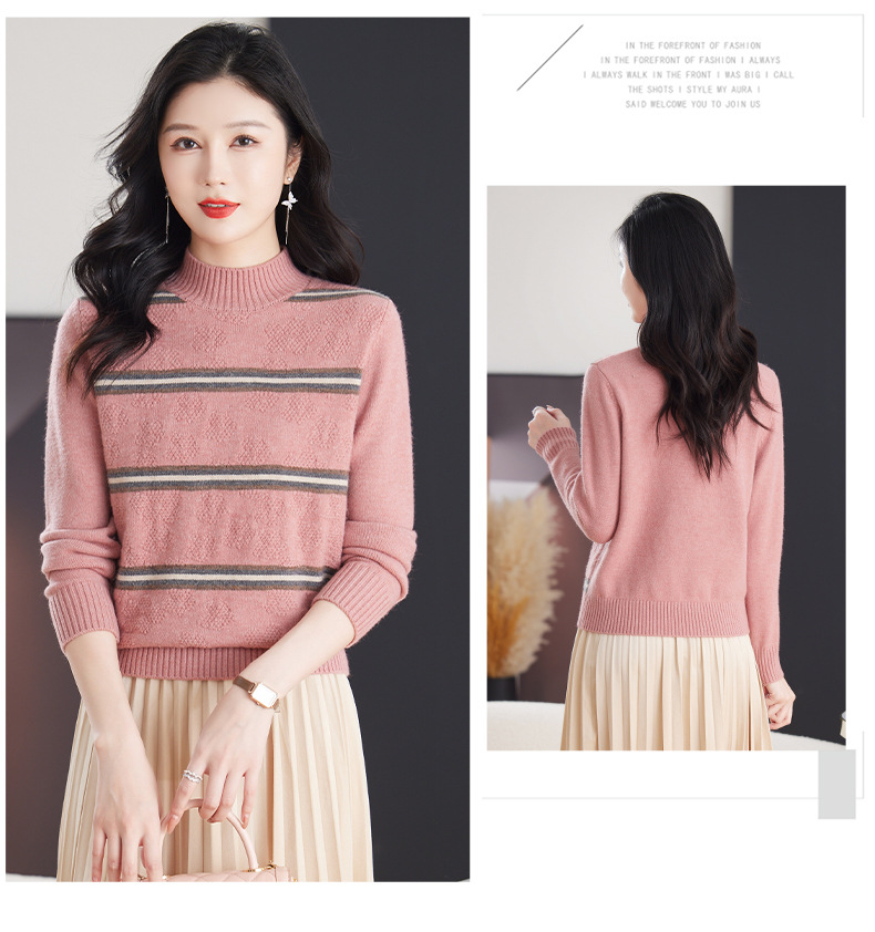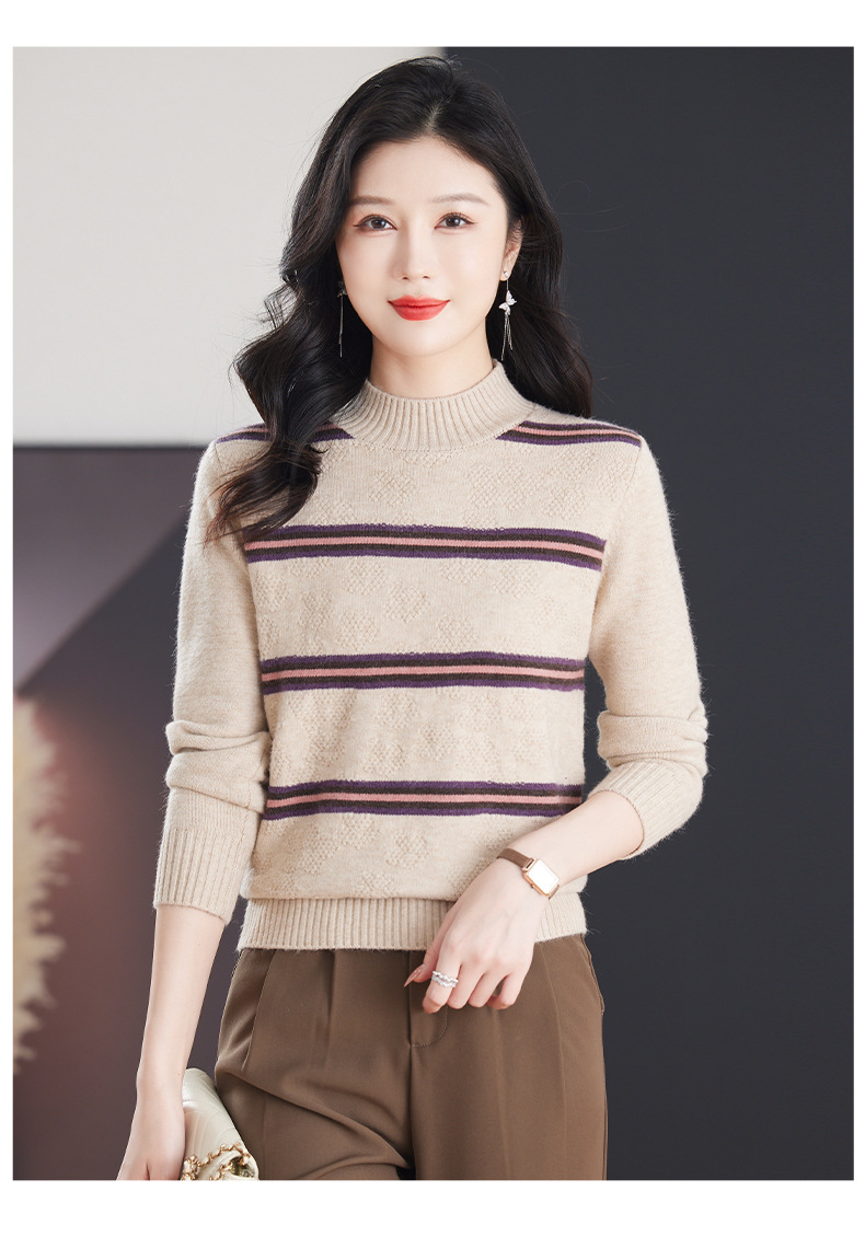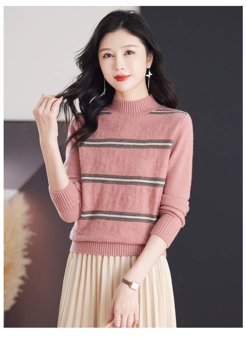 CC-103-79012条纹羊毛针织衫女2024秋冬新款半高领长袖宽松保暖