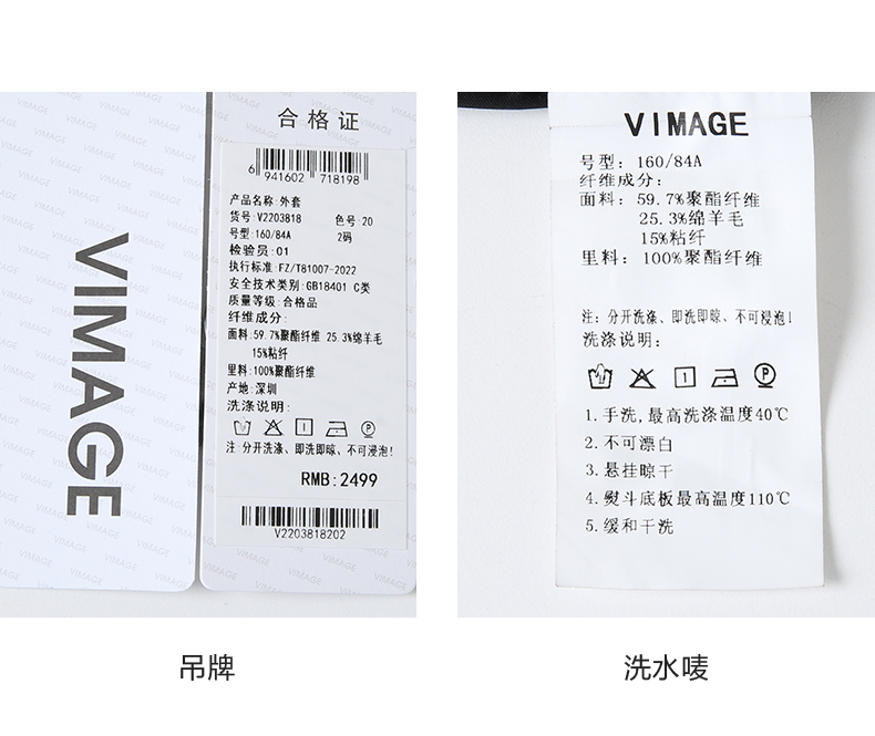 VIMAGE纬漫纪冬季新款时尚百搭收腰显瘦翻领毛呢大衣女外套V2203818