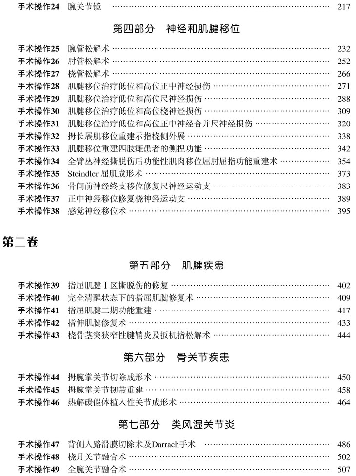 此书以介绍手术技术为主。参编作者不乏国际知名的手外科与整形外科专家,内容几乎涉及了手与腕关节外科的所有重要领域,所介绍的也都是较为成熟和广受认可的手术技术。原书作者采用了大量的手术照片对手术步骤进行了详细的讲解,对重要手术解剖和手术关键点还同时采用了大量彩色插图予以突出,有利于读者的理解和学习,具有很强的实用性。