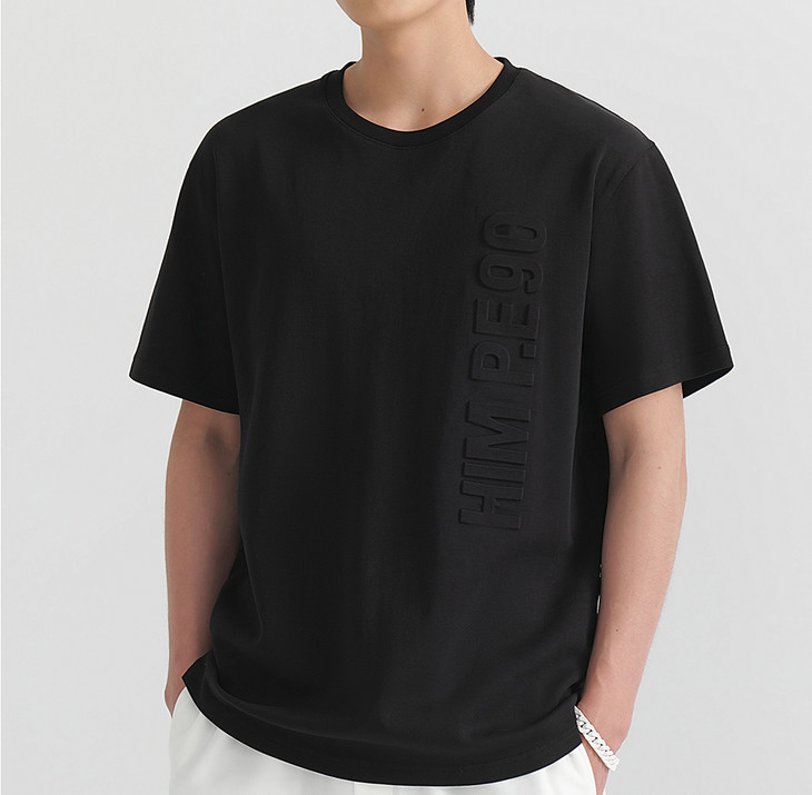 HIM漢崇 男士百搭短袖T恤男士高街舒适立体印花圆领上衣 2026夏季