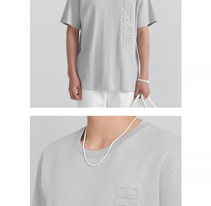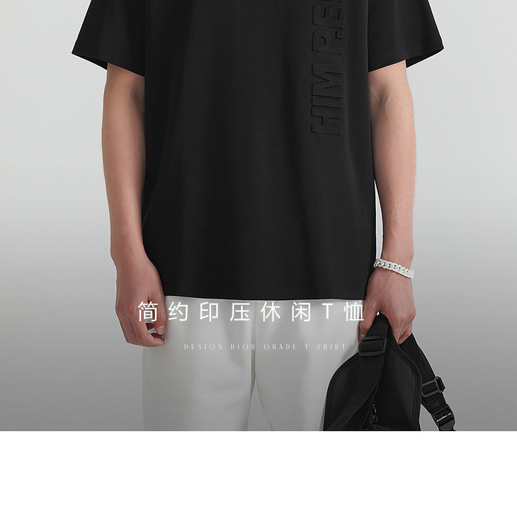 HIM漢崇 柔软休闲圆领T恤简约设计感压花舒适短袖上衣 2026夏季