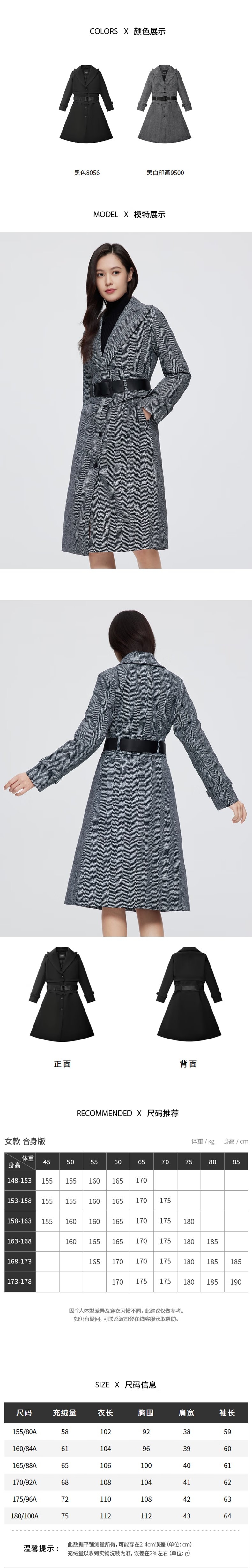 波司登 女及膝可拆卸羽绒风衣羽绒服 B20134786