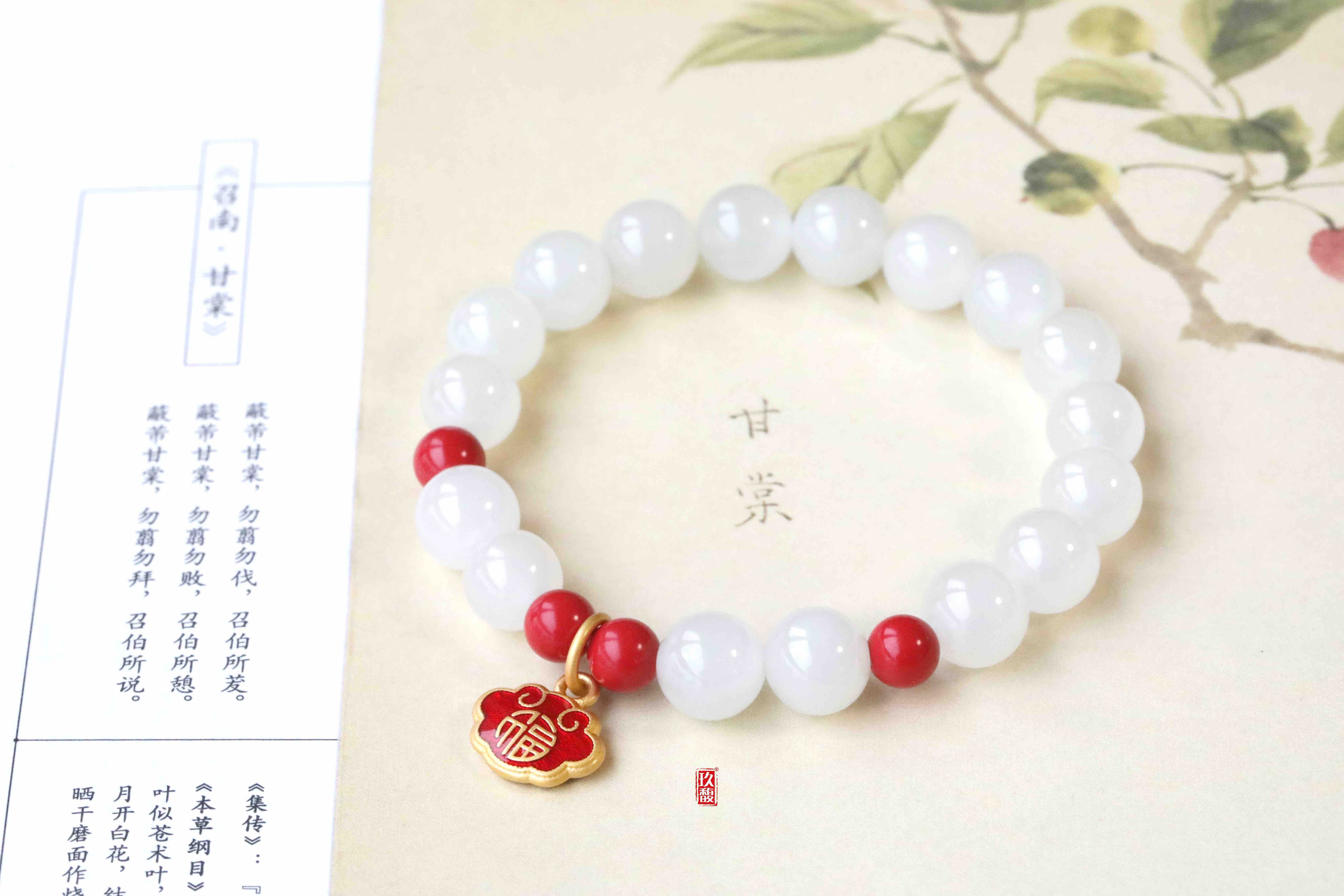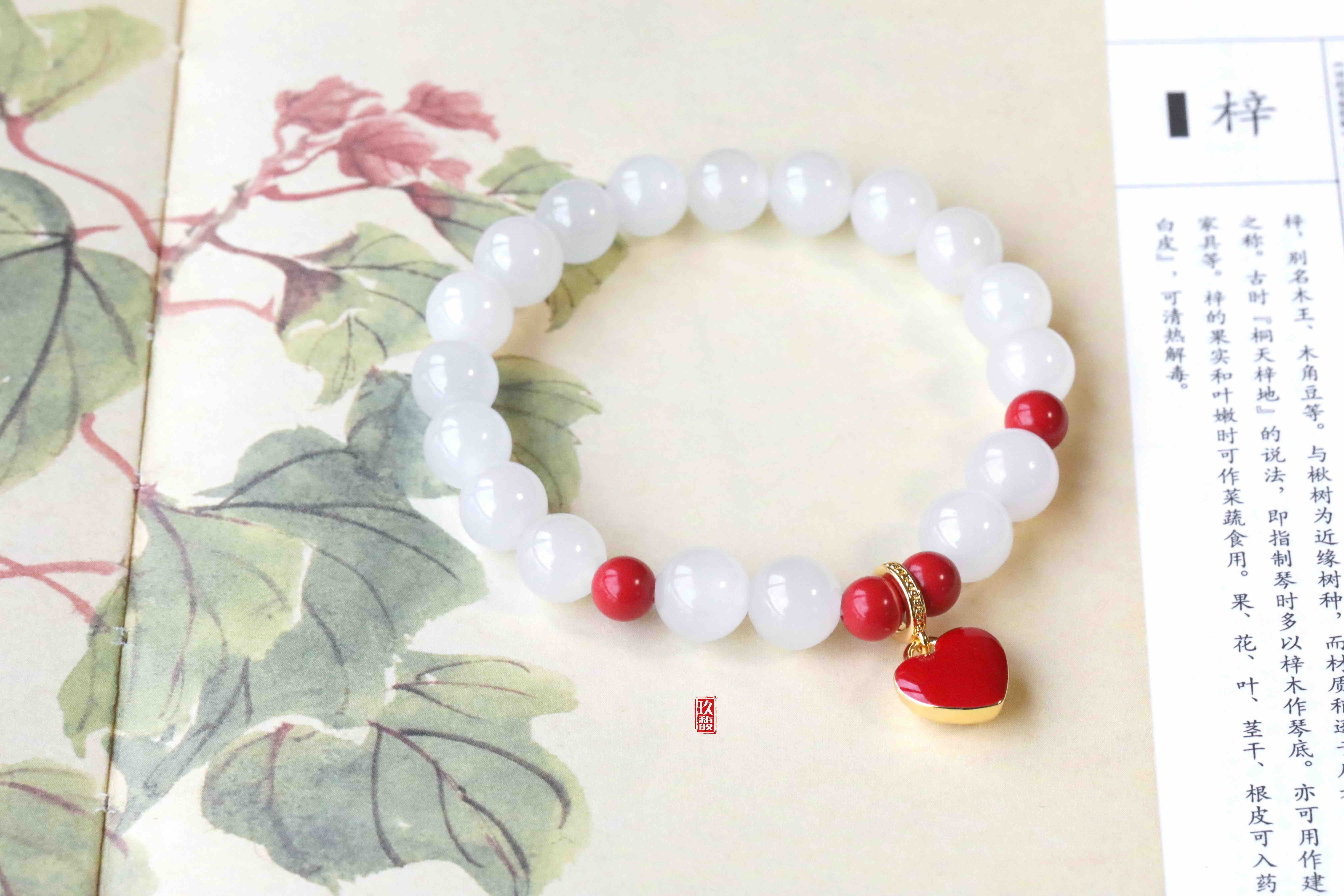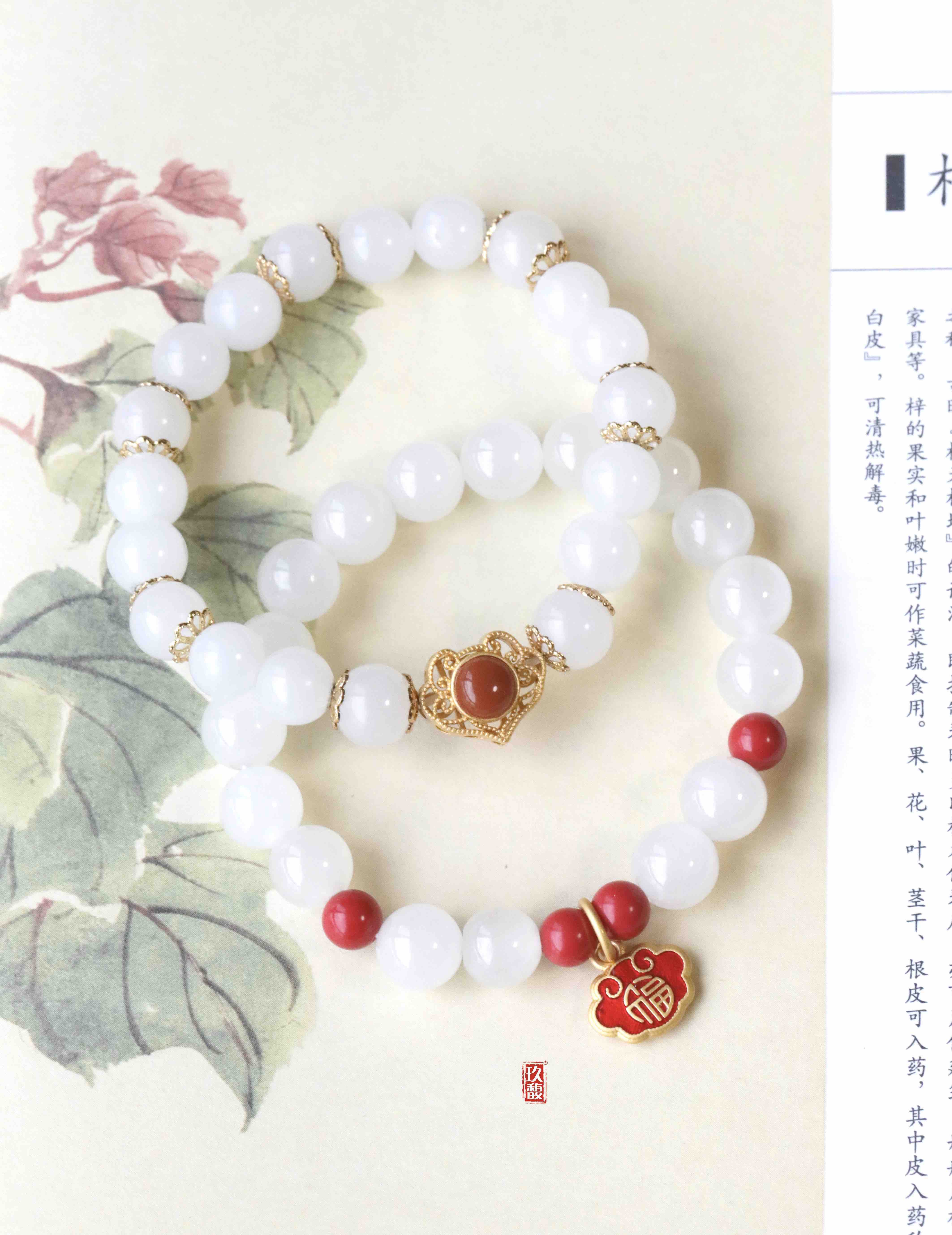 配珠:925银珐琅挂件、6mm朱砂圆珠