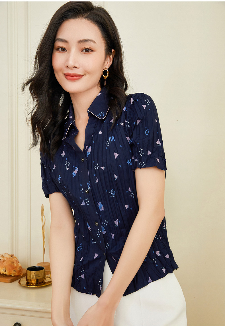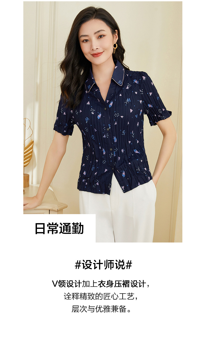 乔万尼短袖衬衫女新款夏季港风设计上衣EF2C349