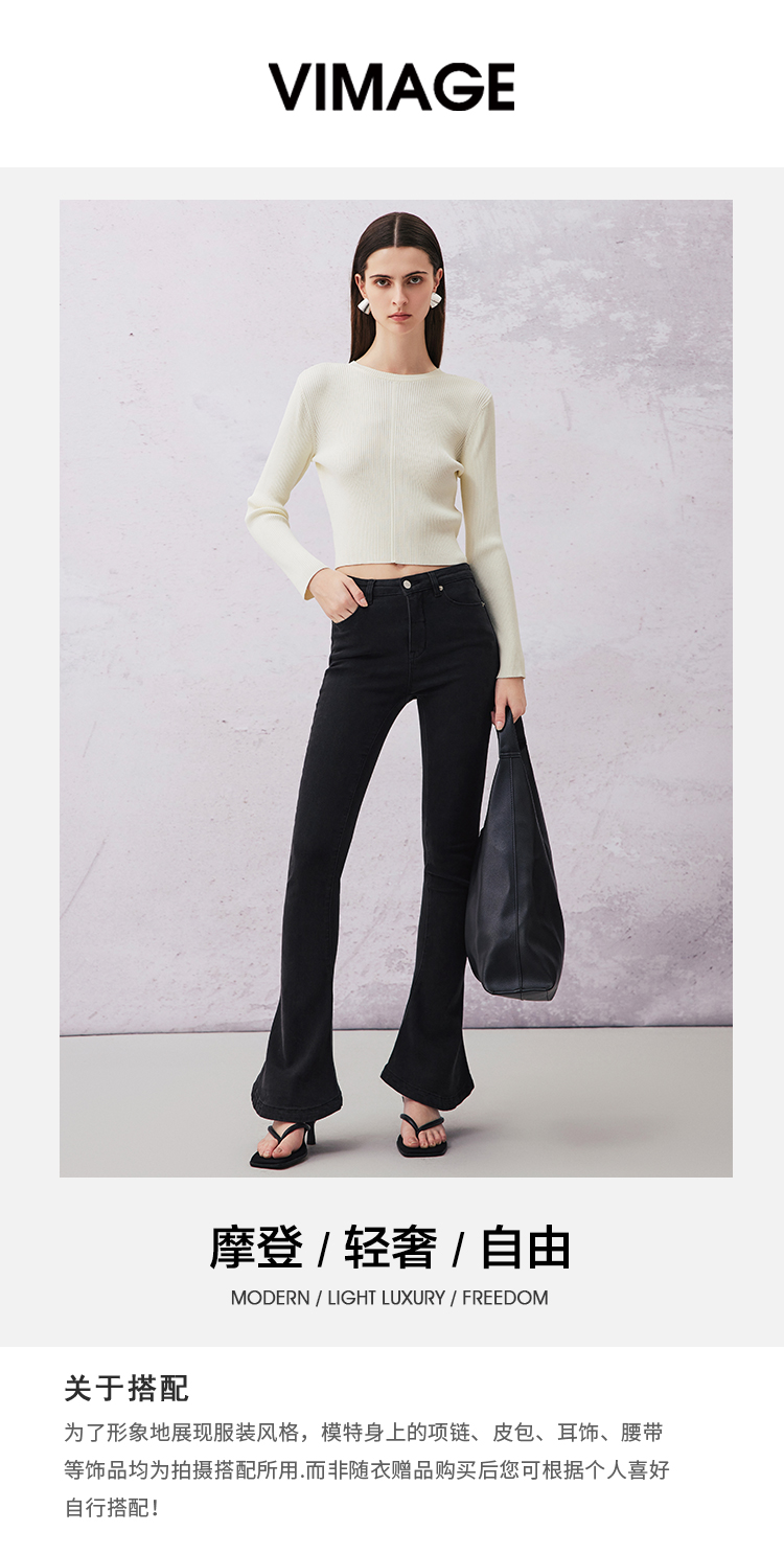 VIMAGE纬漫纪春季新款百搭修身针织衫上衣V2101710