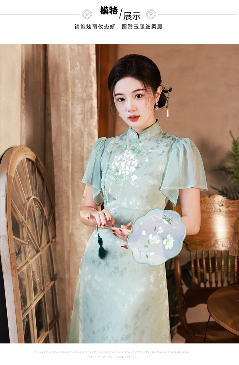 冬款加绒加厚披肩斗篷 复合蕾丝加绒气质女旗袍SJT411