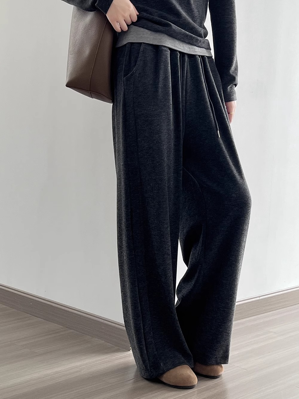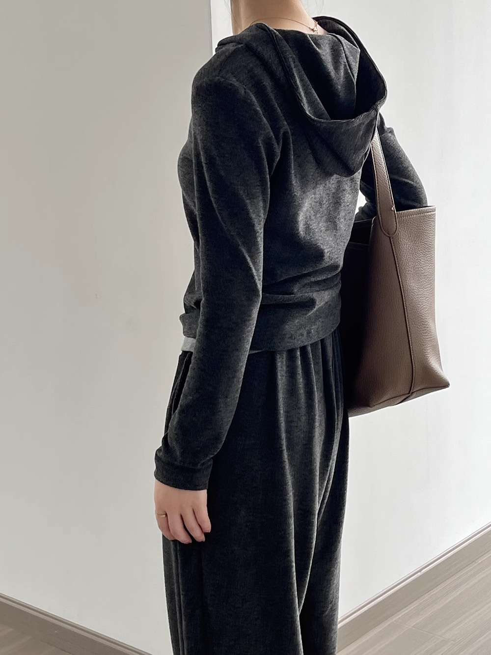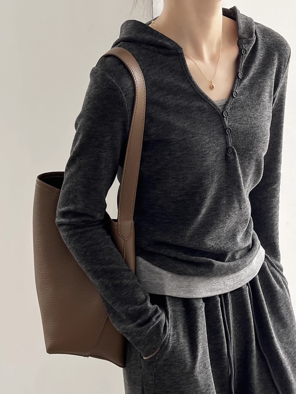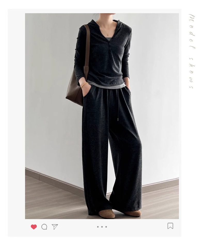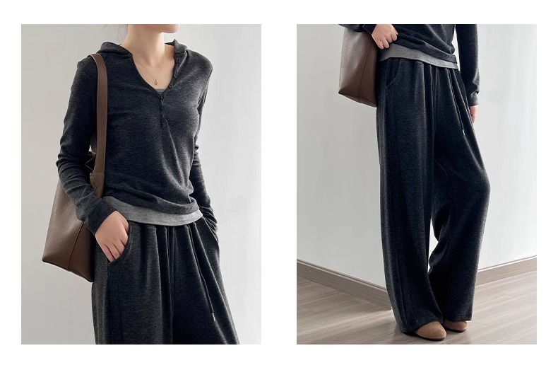 早秋懒人穿搭 | “糯米”连帽三件套 卫衣+吊带+高腰阔腿裤 慵懒高级感套装深灰色