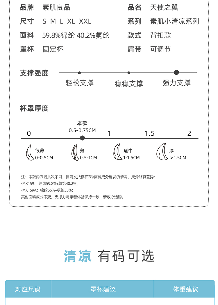 素肌良品“无感舒适天使之翼”软支撑文胸 MX159A-FX