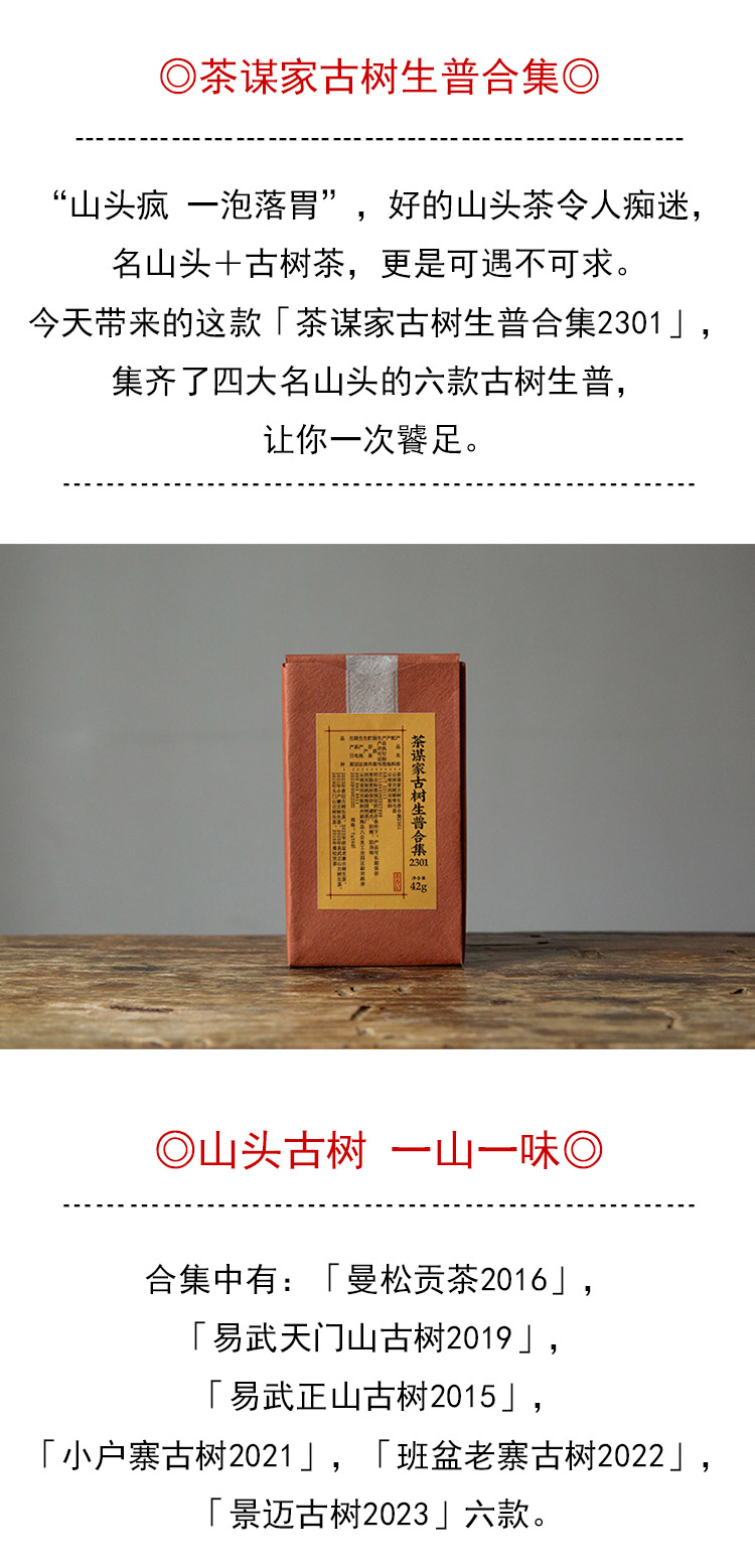 茶香记 茶谋家古树生普合集2301 普洱生茶 名山头 古树茶 曼松贡茶 易武 布朗山