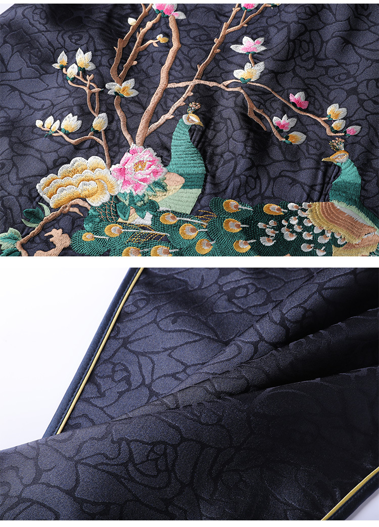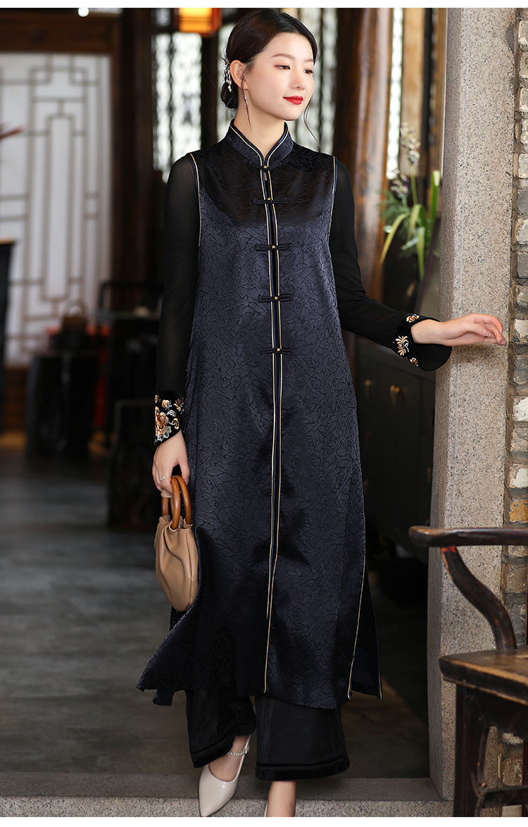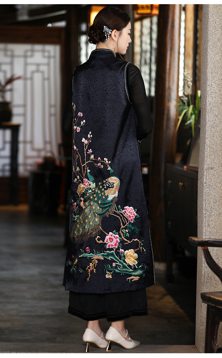 上海旗袍厂KDS-2197冬季新款马夹外套民族风女装立领无袖复古绣花连衣裙