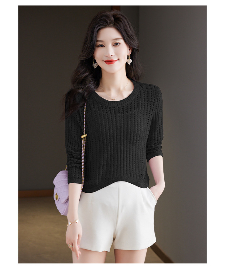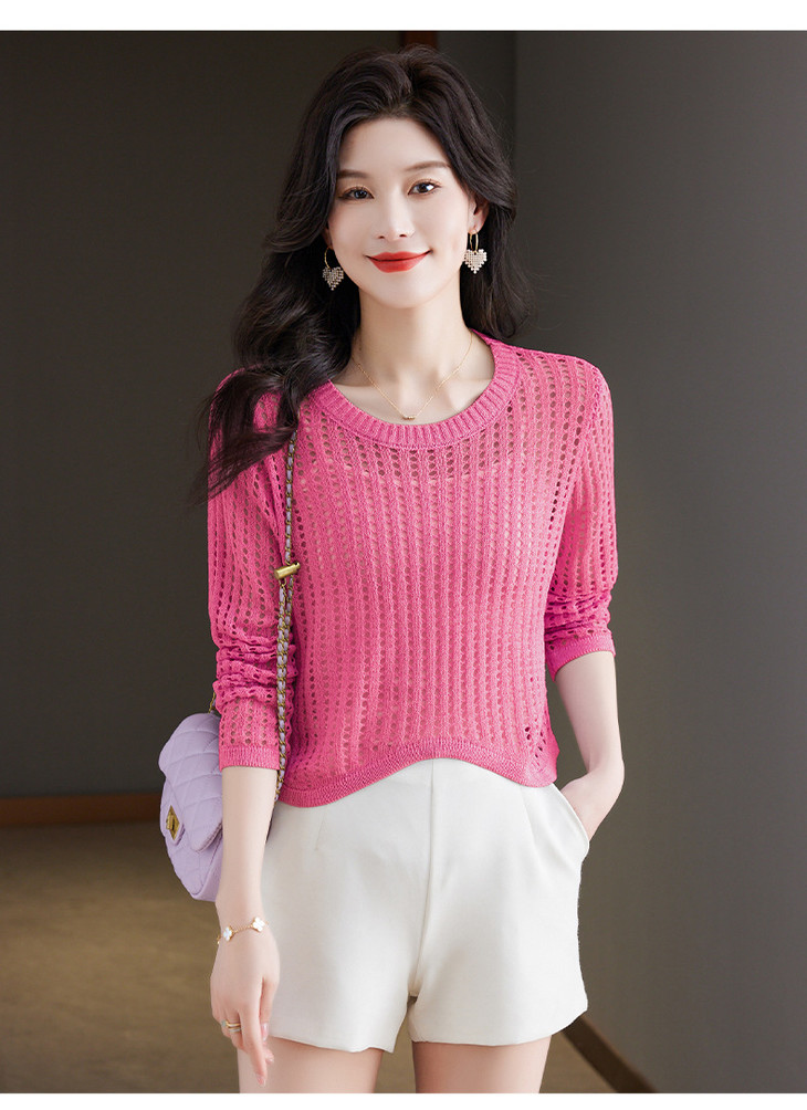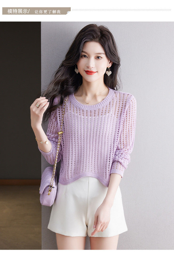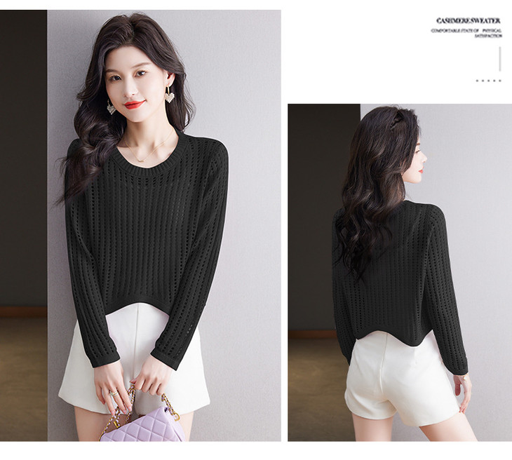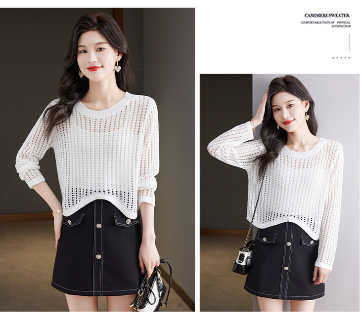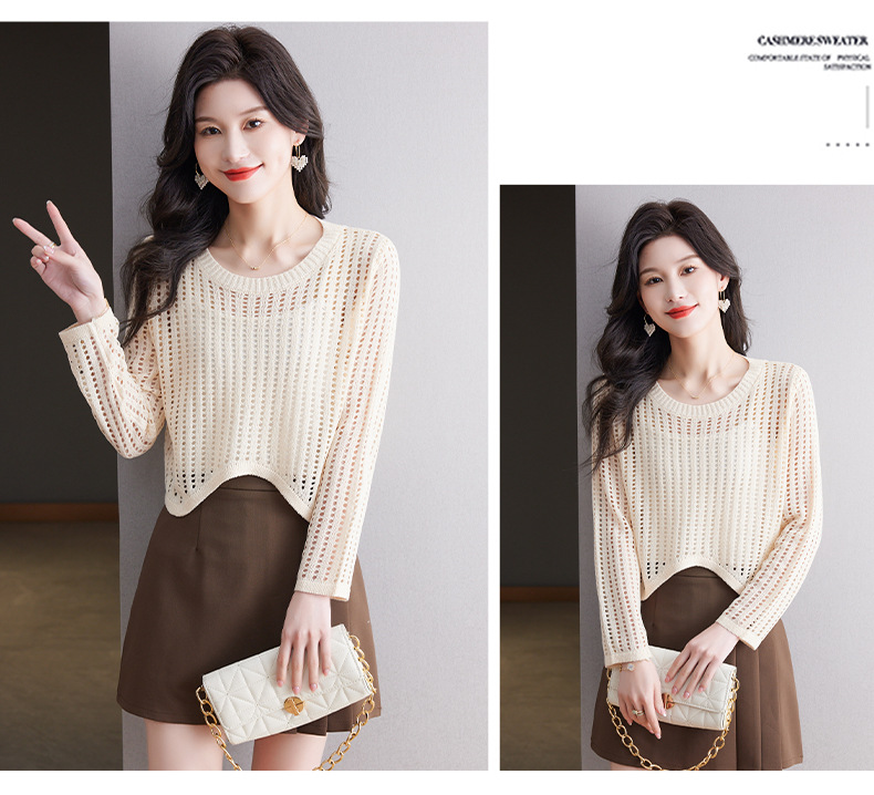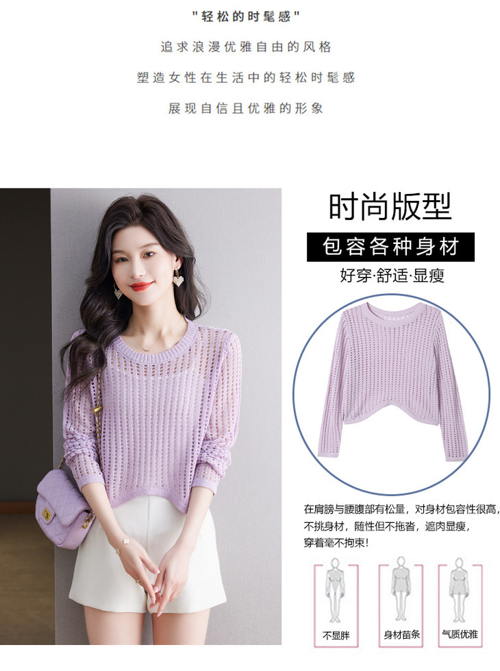 CC13-6821长袖打底衫女t恤夏装2024新款宽松镂空洋气薄款显瘦遮肉短款上衣