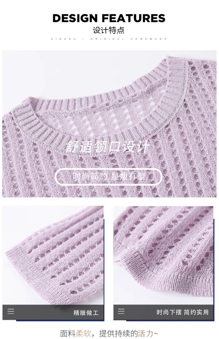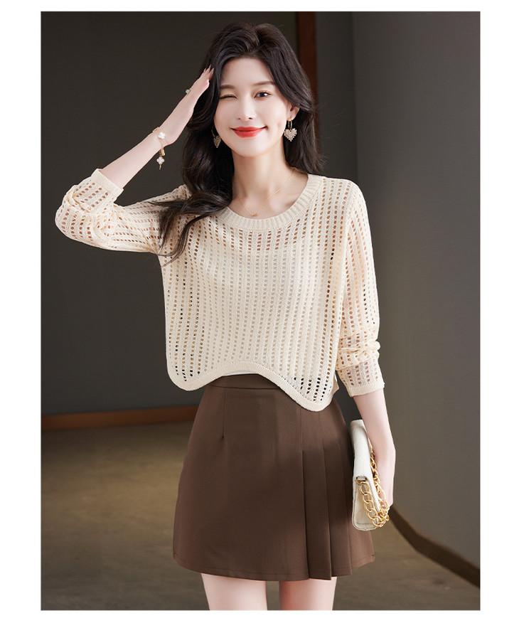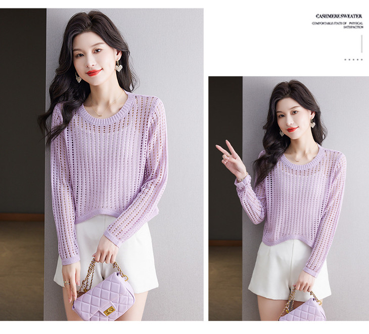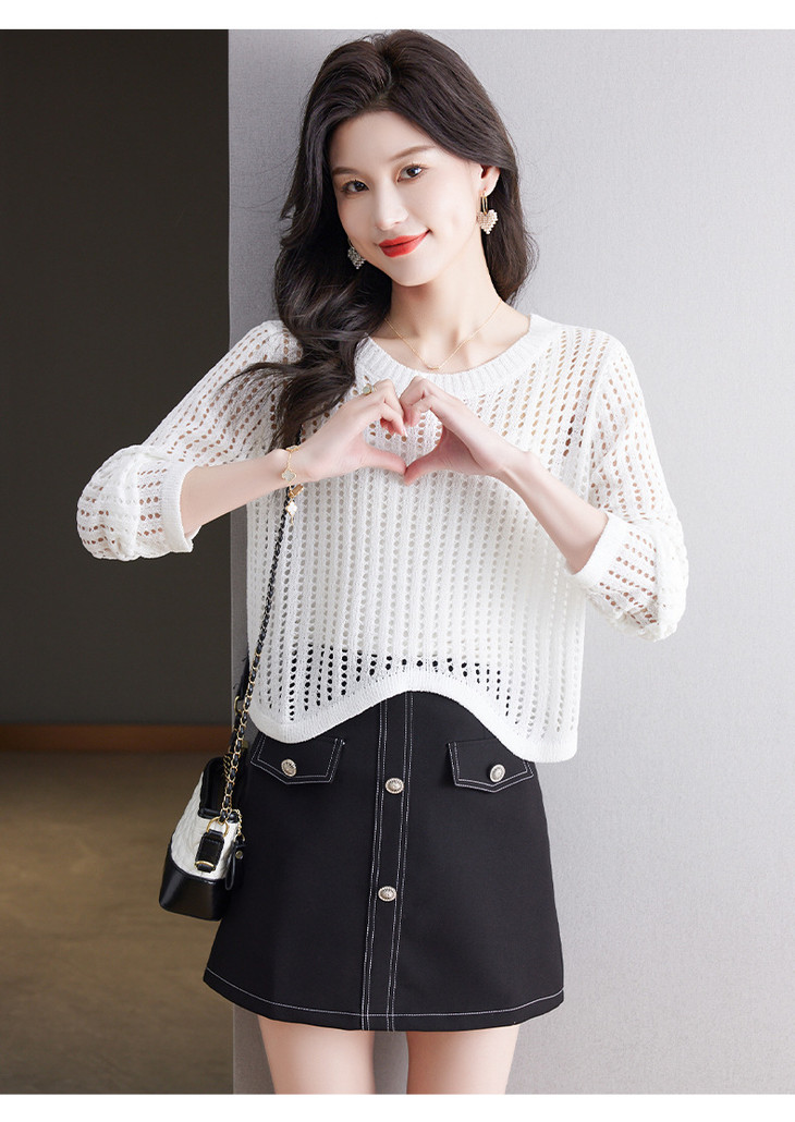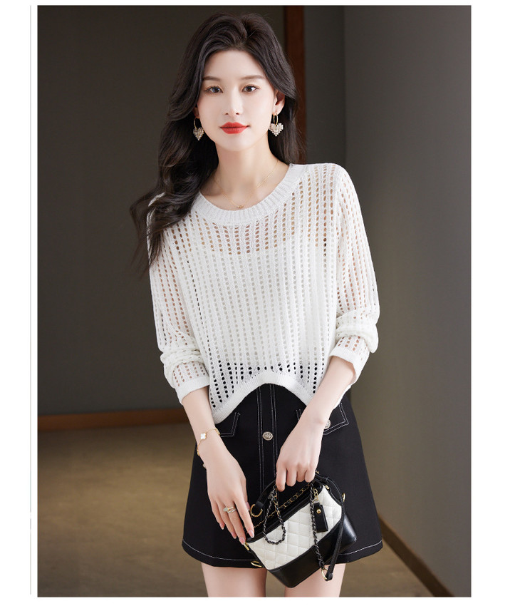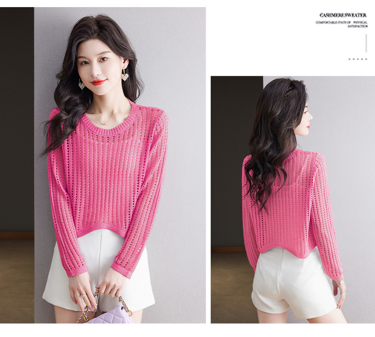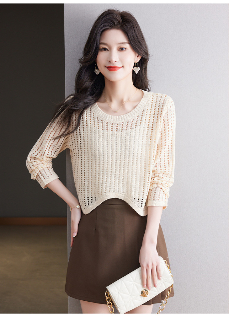 CC13-6821长袖打底衫女t恤夏装2024新款宽松镂空洋气薄款显瘦遮肉短款上衣