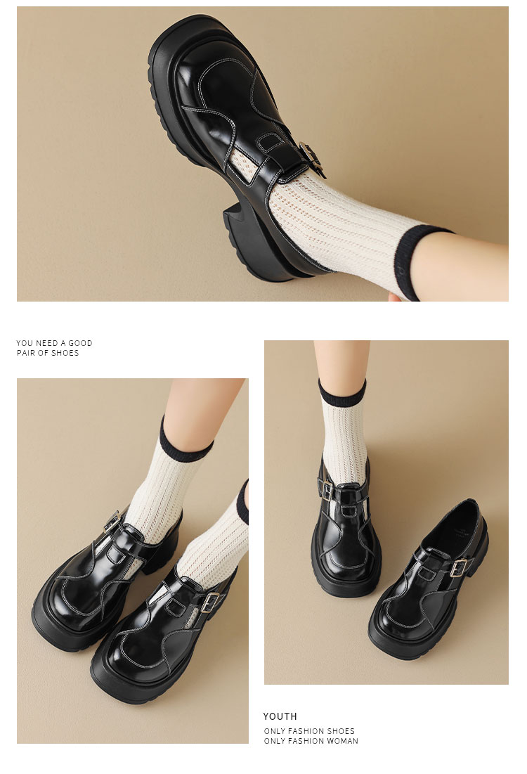 板鞋牛皮松糕单鞋高跟厚底,内增高休闲高帮鞋子短靴女鞋AM-1371