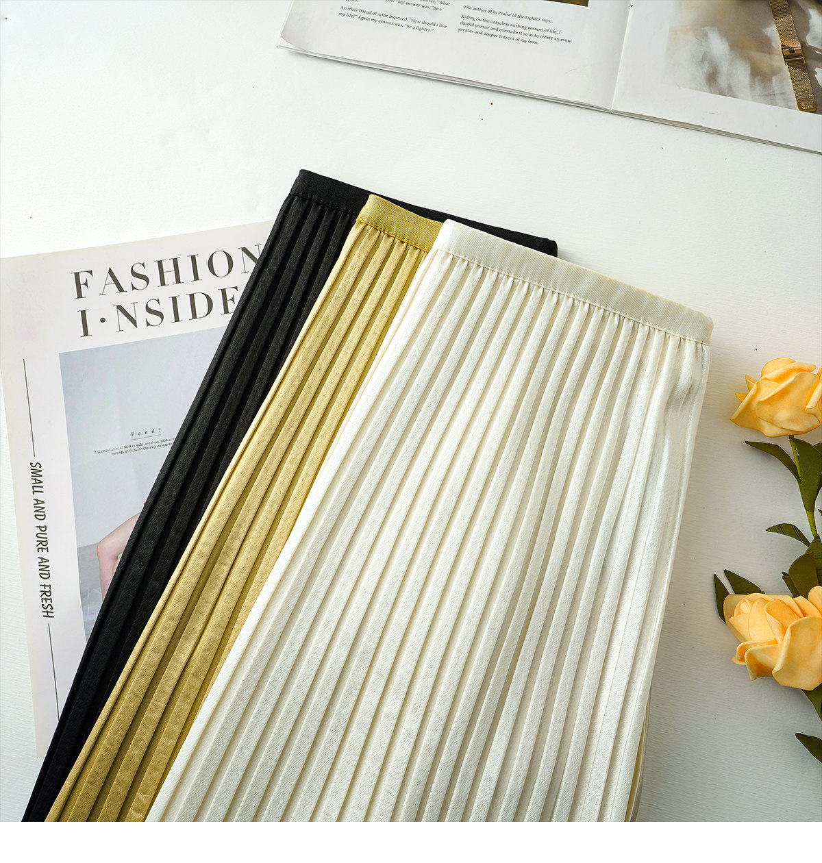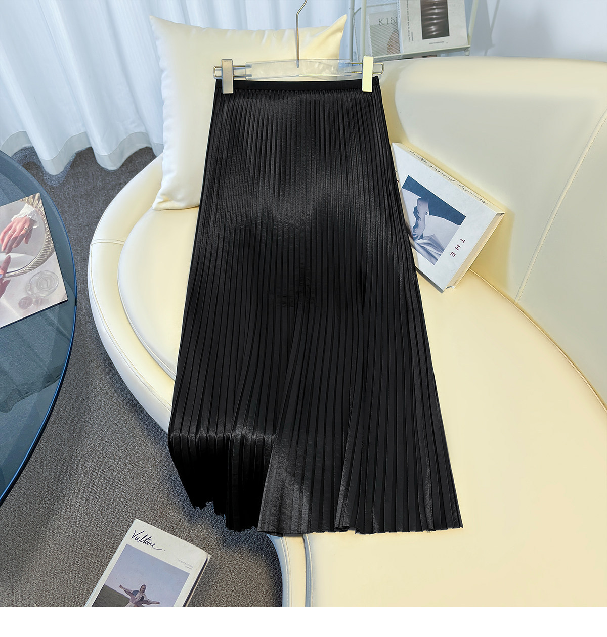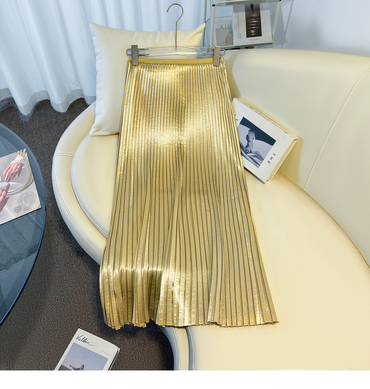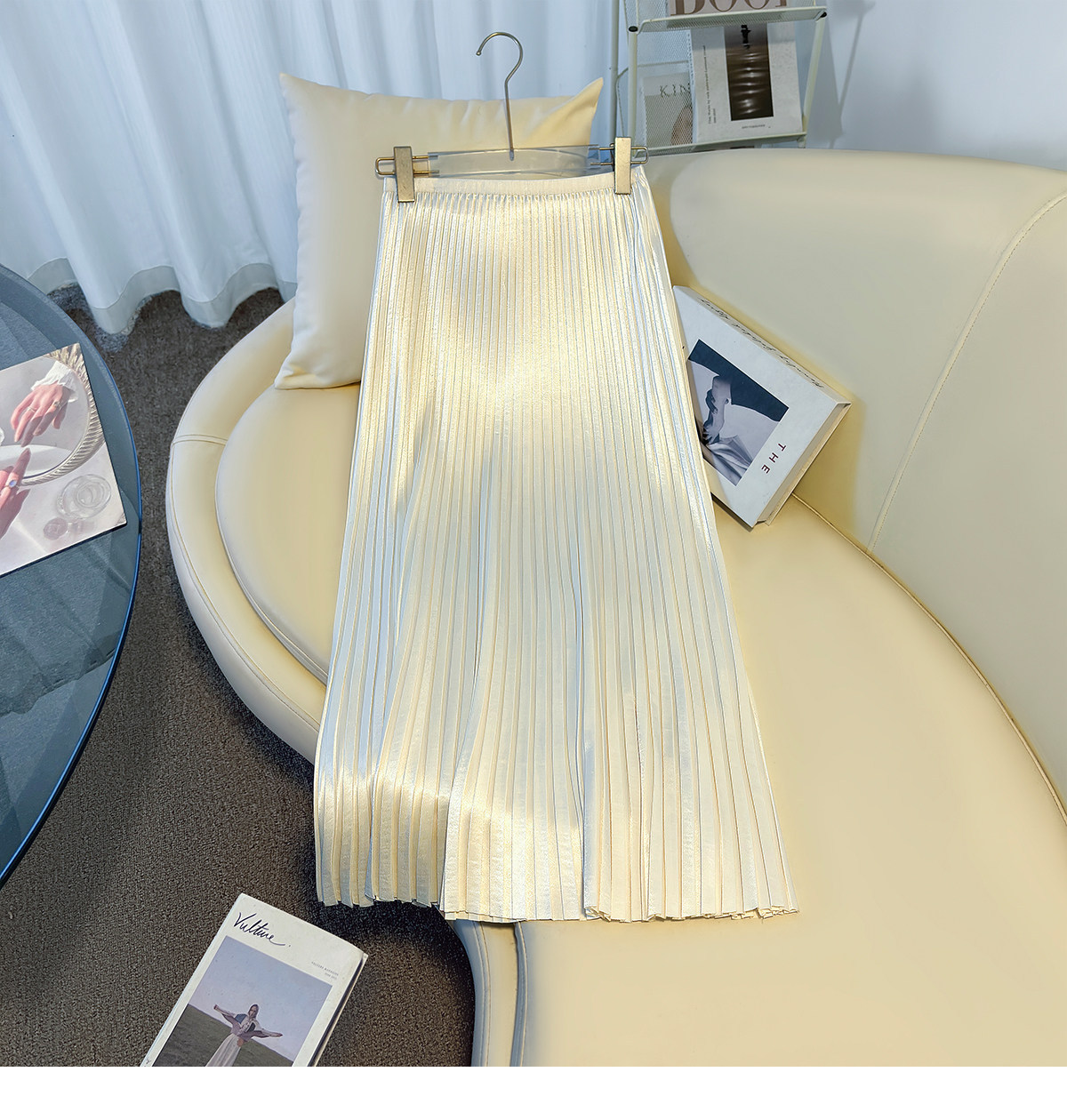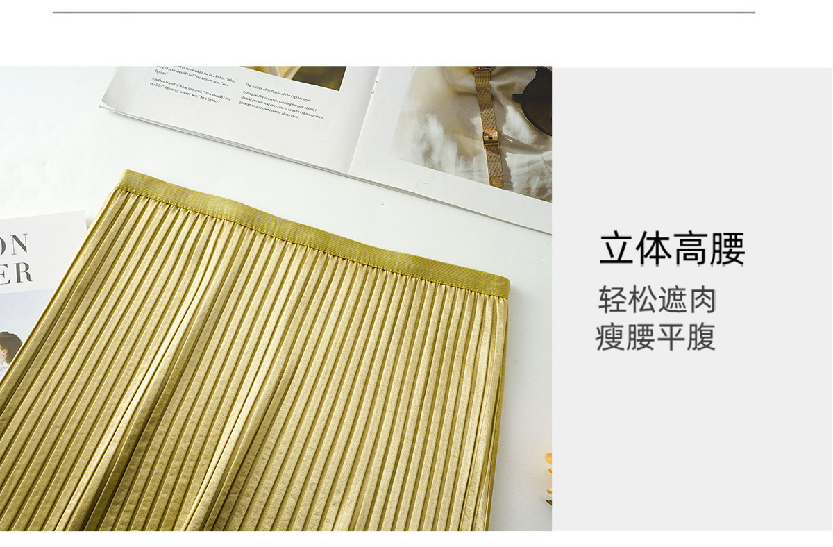 丁摩 法式温柔风百褶半身裙女春夏新款压褶缎面裙垂感显瘦气质裙子6ZF-7166