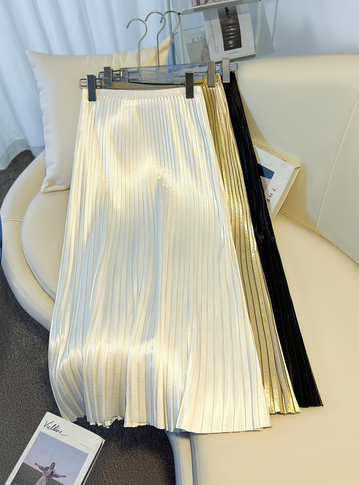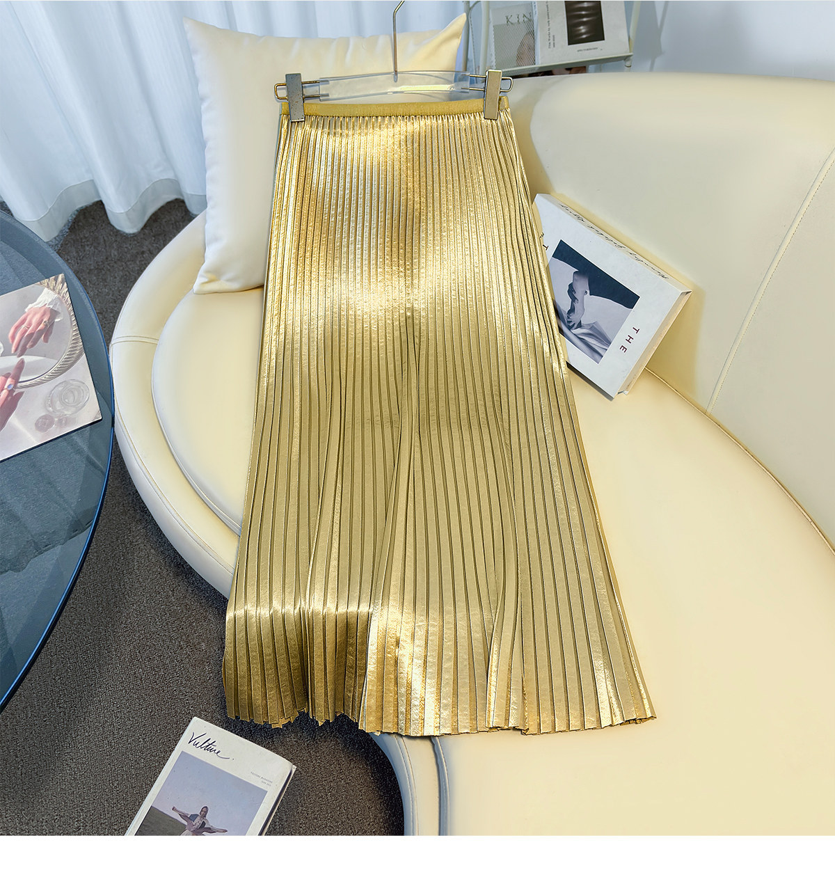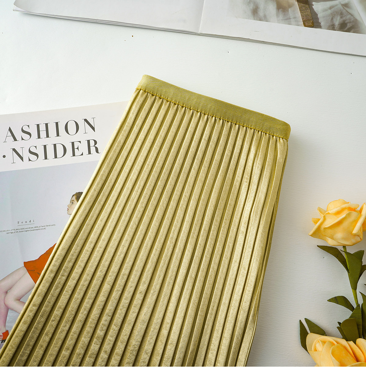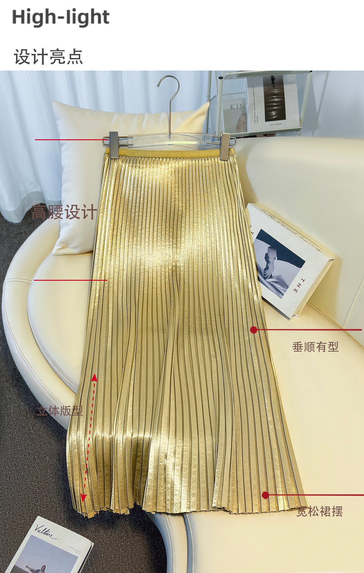 丁摩 法式温柔风百褶半身裙女春夏新款压褶缎面裙垂感显瘦气质裙子6ZF-7166