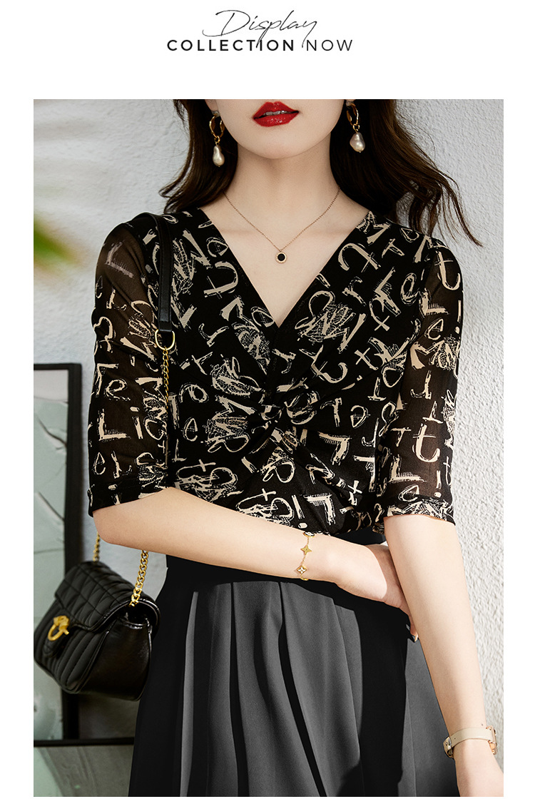 舒适百搭,棉质v领短袖t恤洋气小衫S8220254