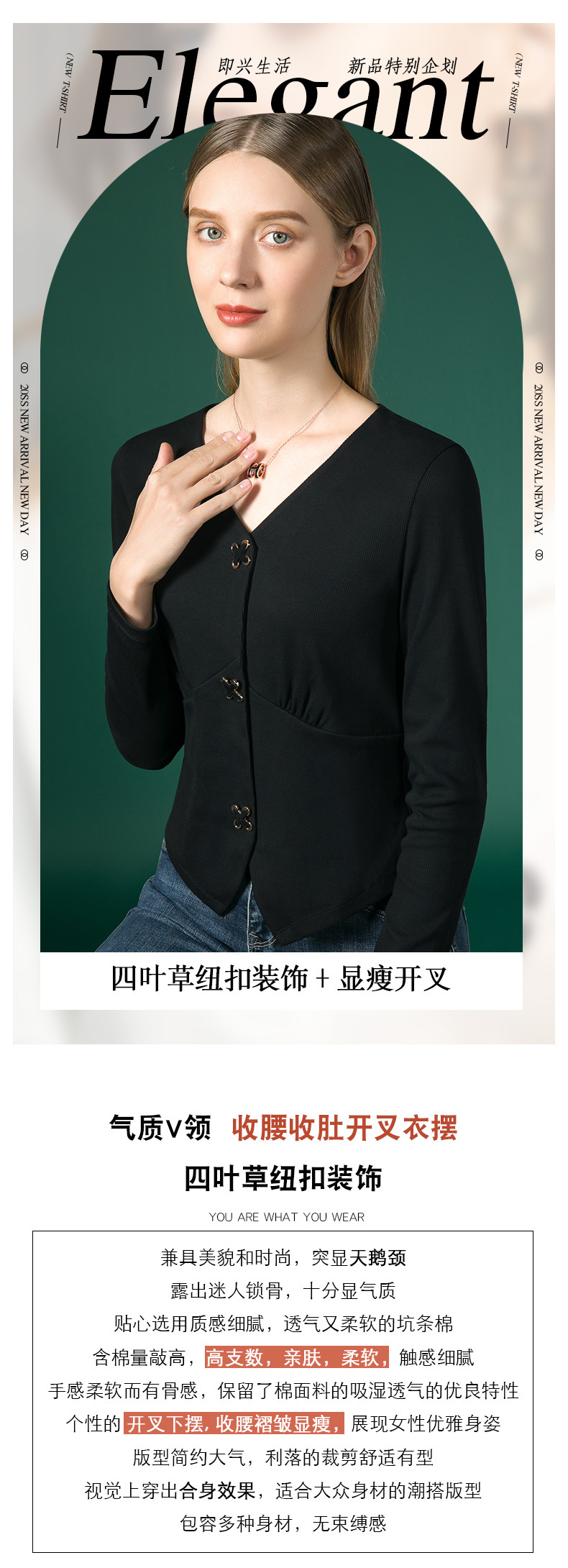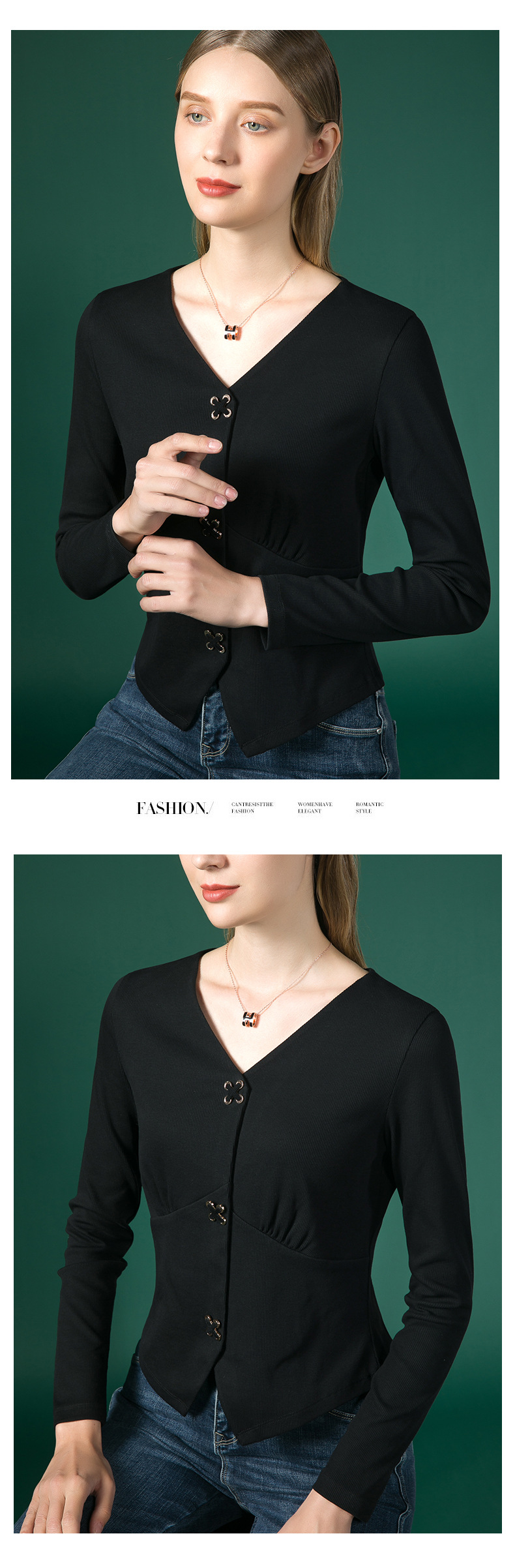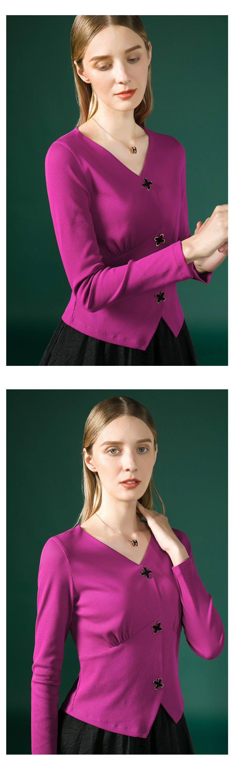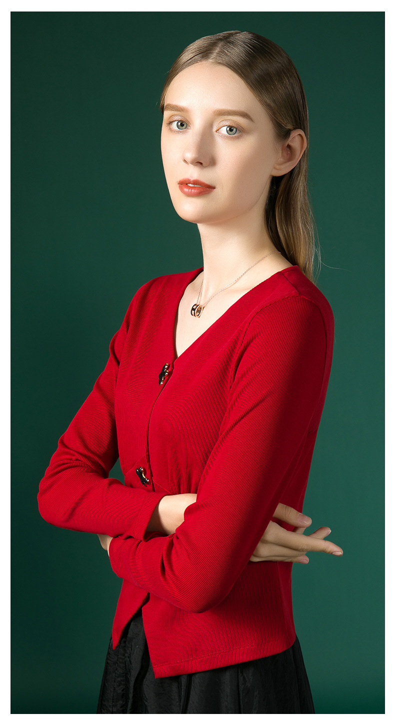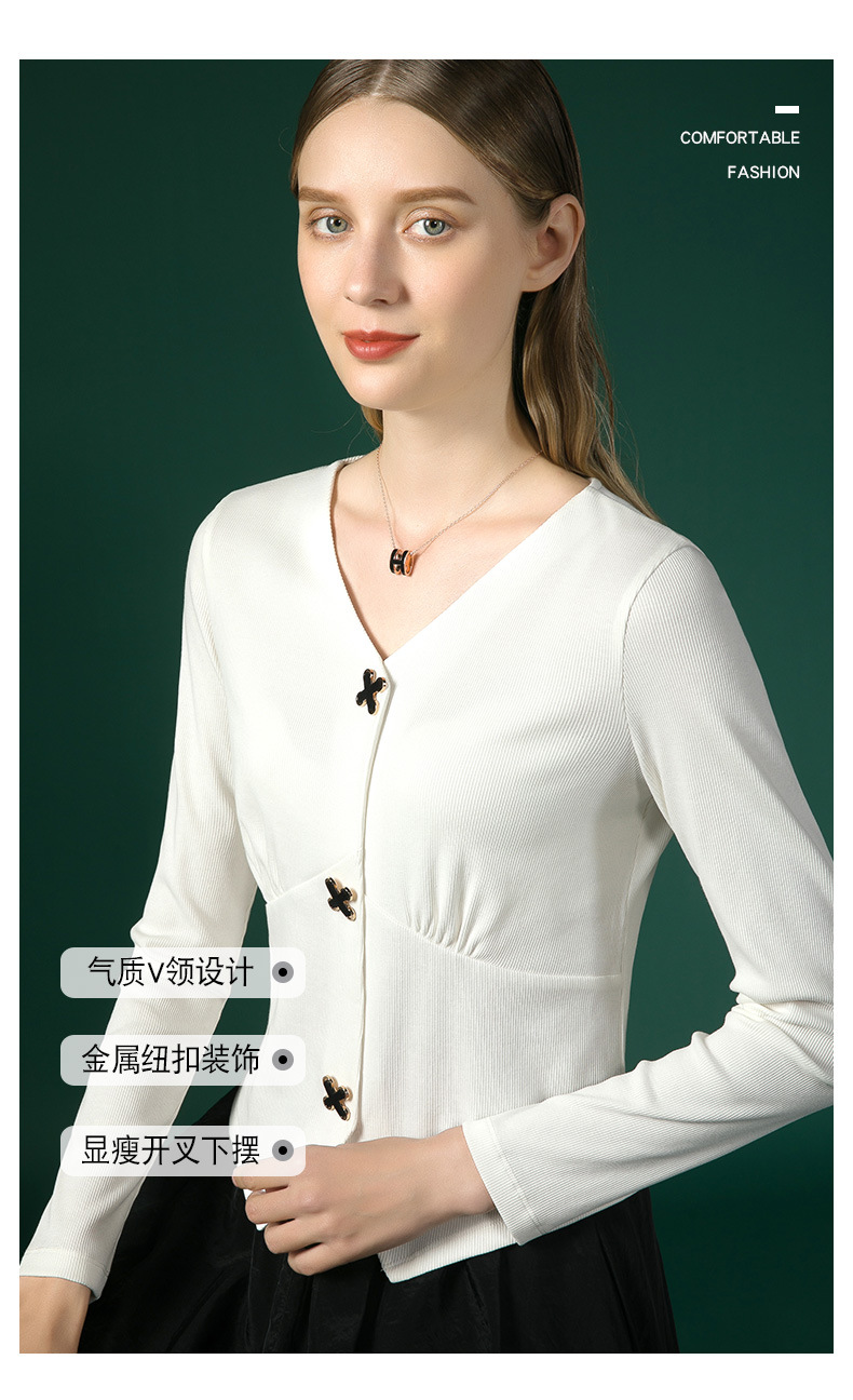 新款法式V领十字扣长袖衬衫J663