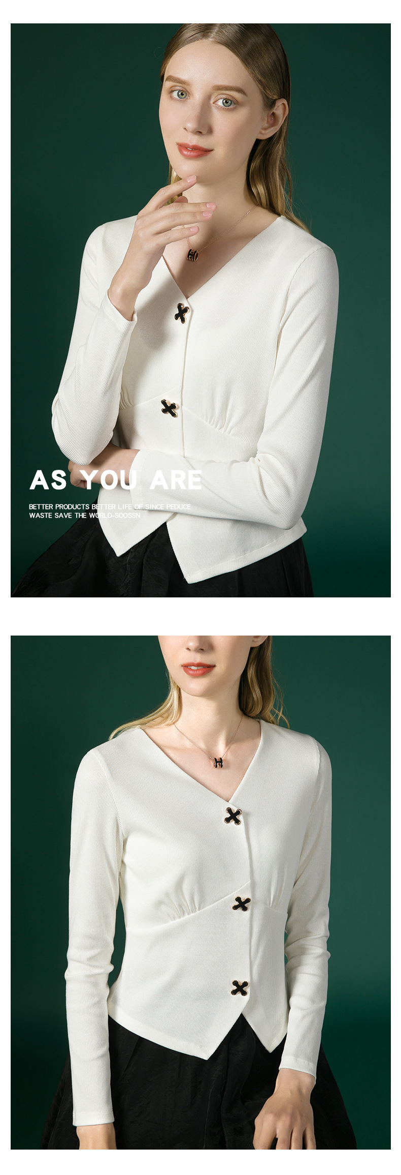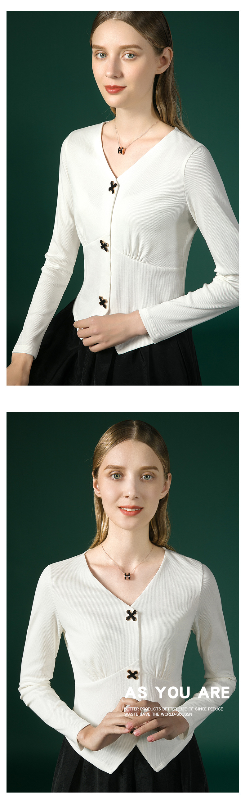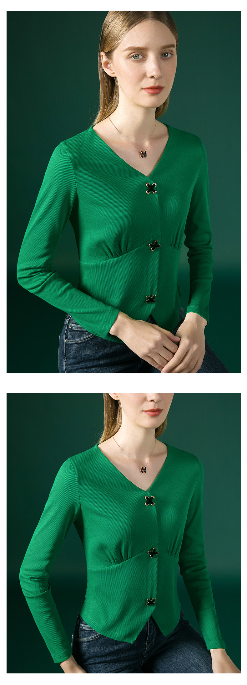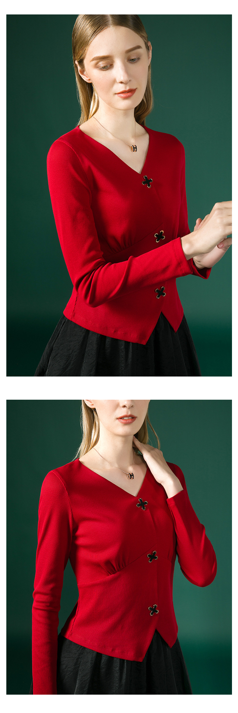 新款法式V领十字扣长袖衬衫J663