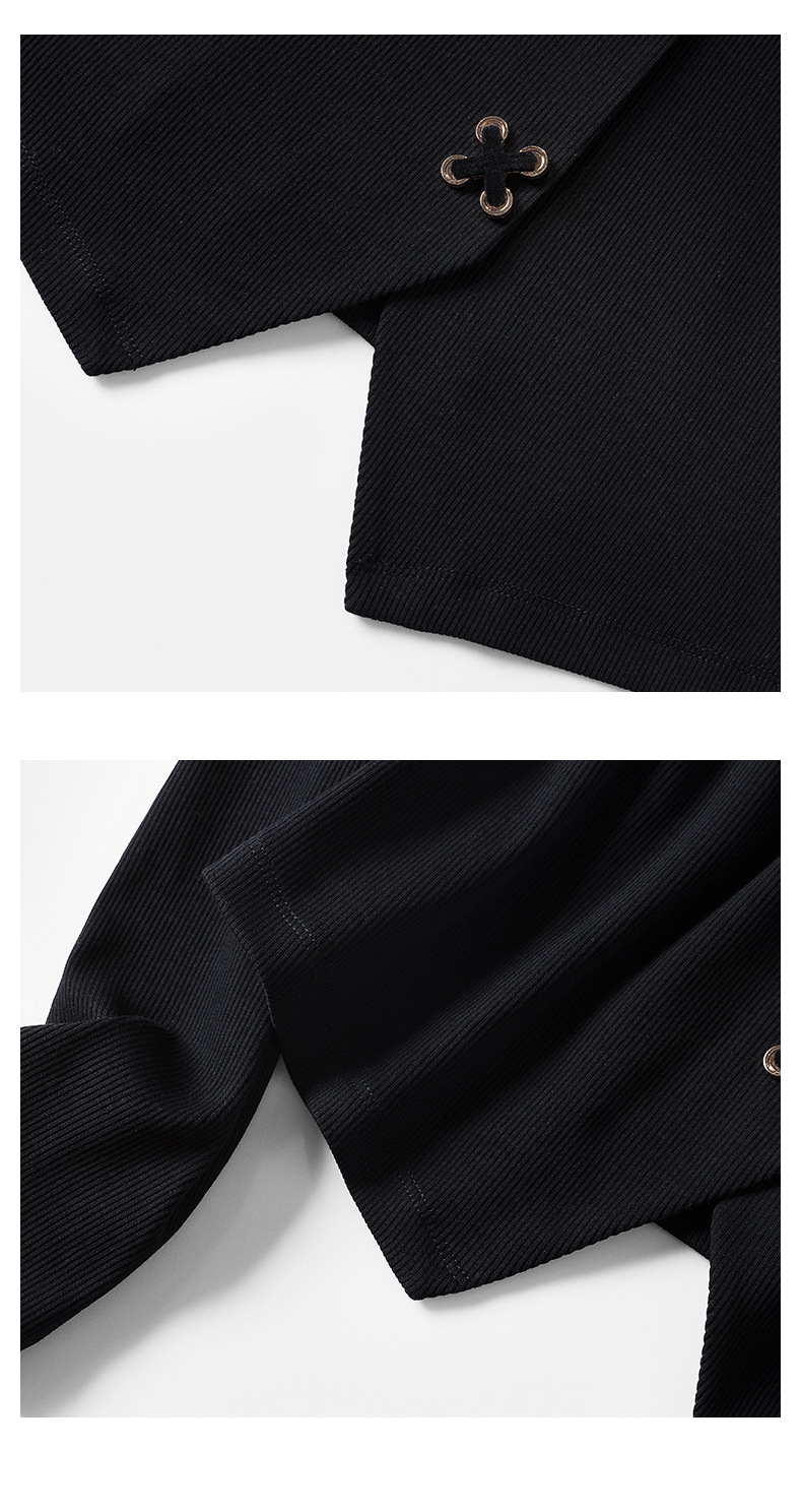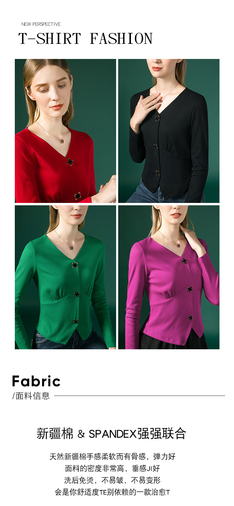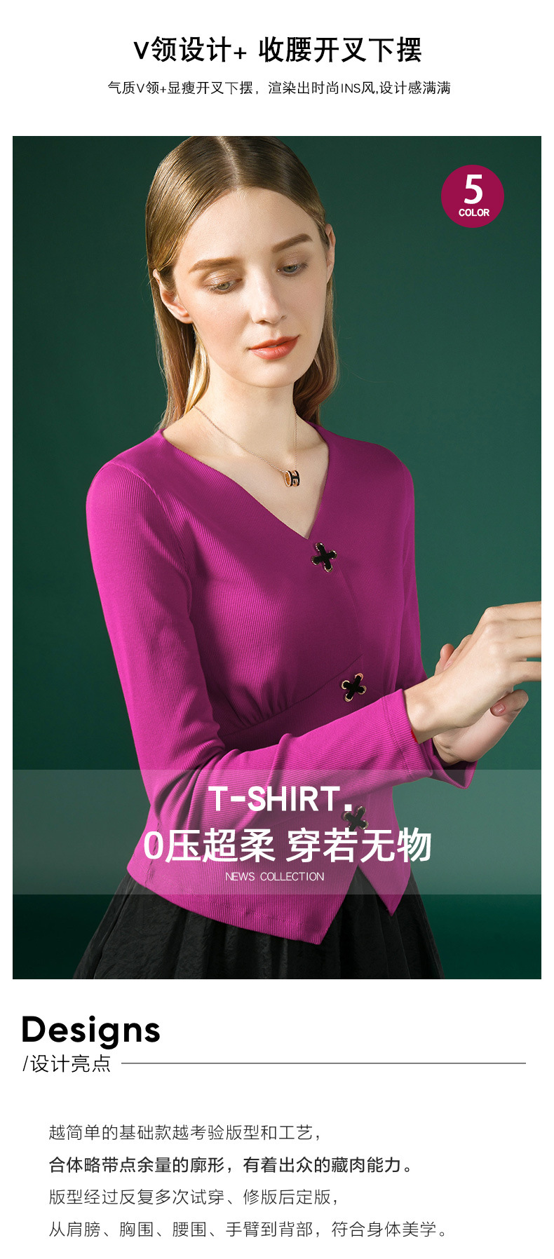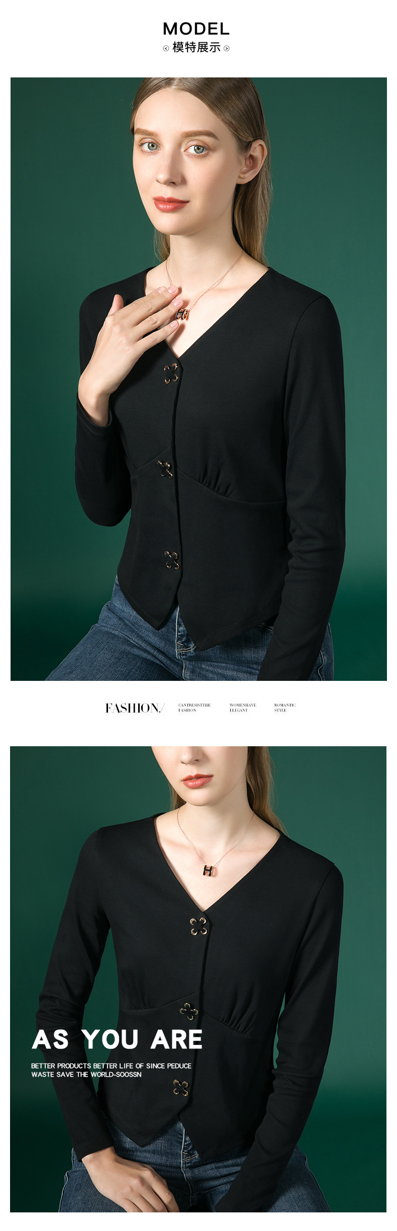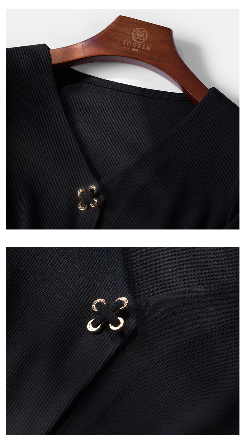 新款法式V领十字扣长袖衬衫J663