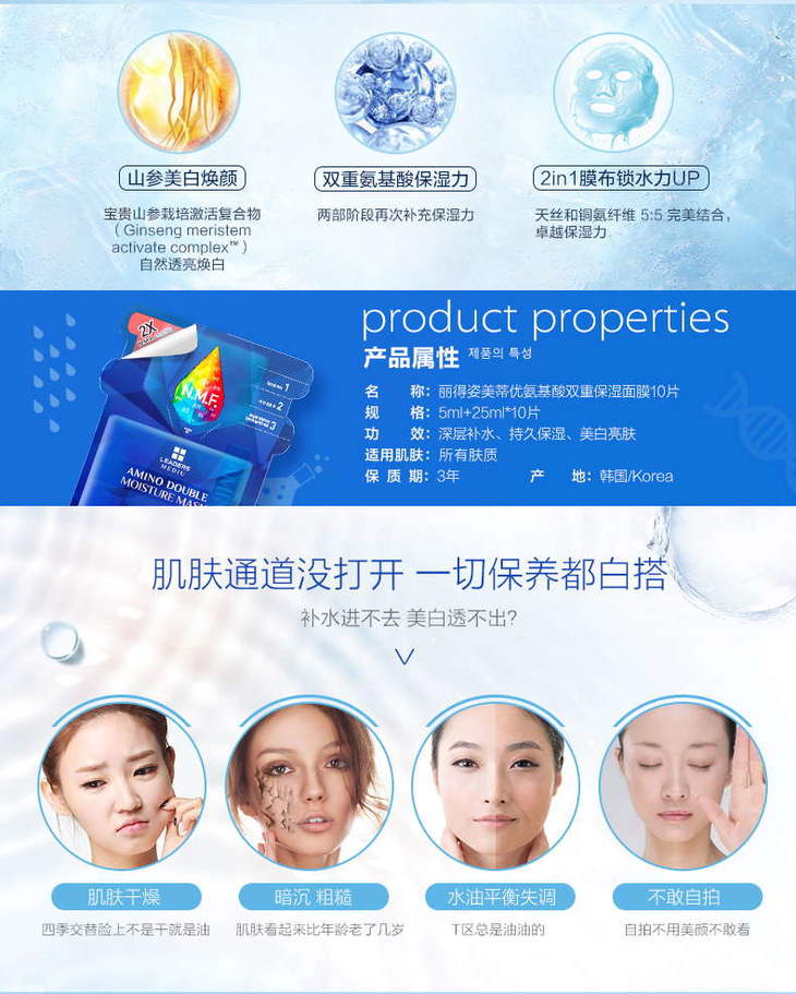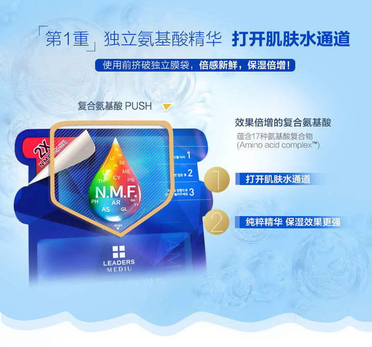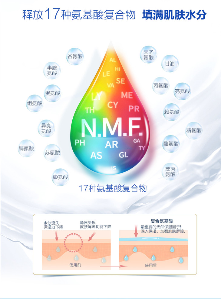 3.补水更直接有效,系统供给皮肤水分,形成水分保护膜持久保湿。