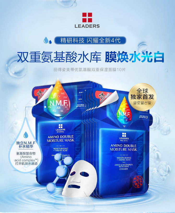 Leaders 丽得姿第四代美蒂优水库保湿面膜!十片盒男女都能用丰富的综合氨基酸与皮肤角质层的氨基酸分比率相似,采用阿尔卑斯水,含有多种矿物质!䃼水面膜少不了,另肌肤长期滋润补水,皮肤都会光亮些,皱纹都不会有,丽得资蓝色补水款性价比高,是你长期可用信心面膜💖