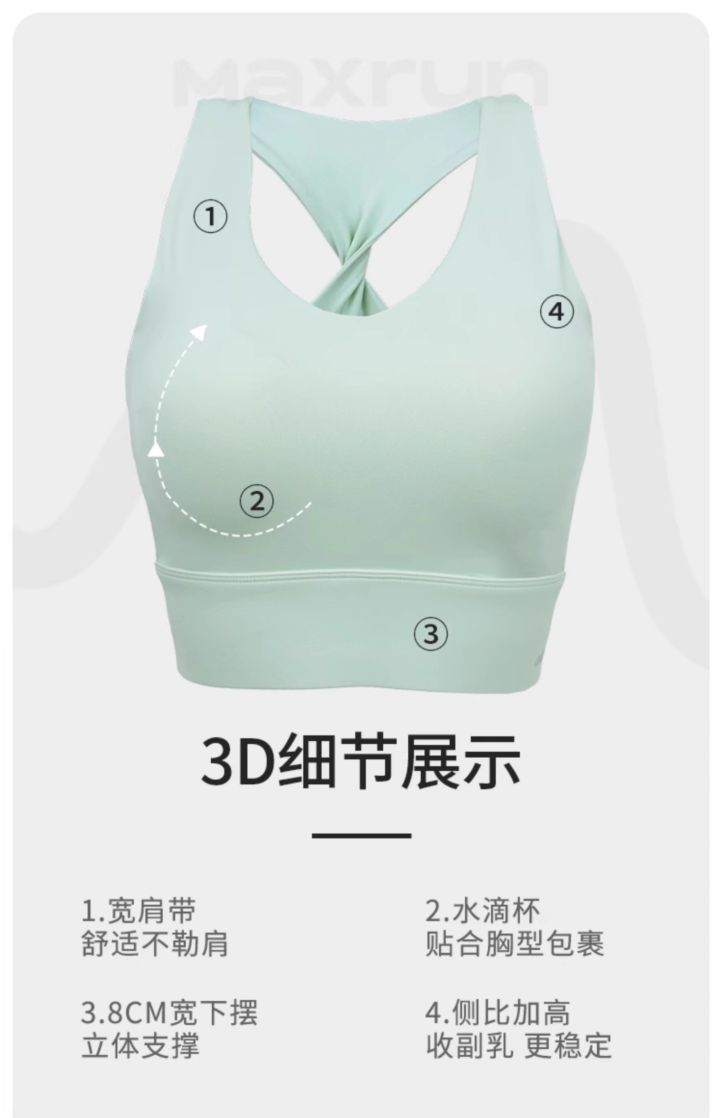 【限时秒】YOGACODE【火树银花系列】大码运动内衣女防震固定杯遮副乳加大文胸胖mm健身背心DWB215025