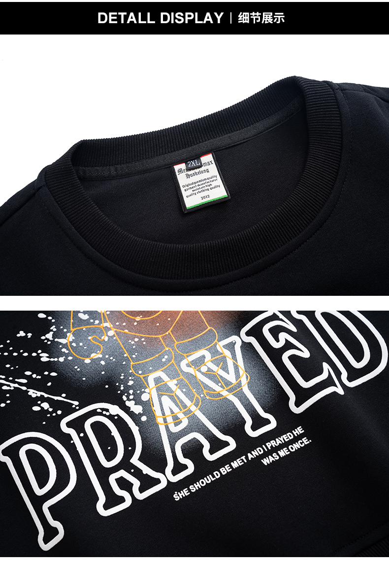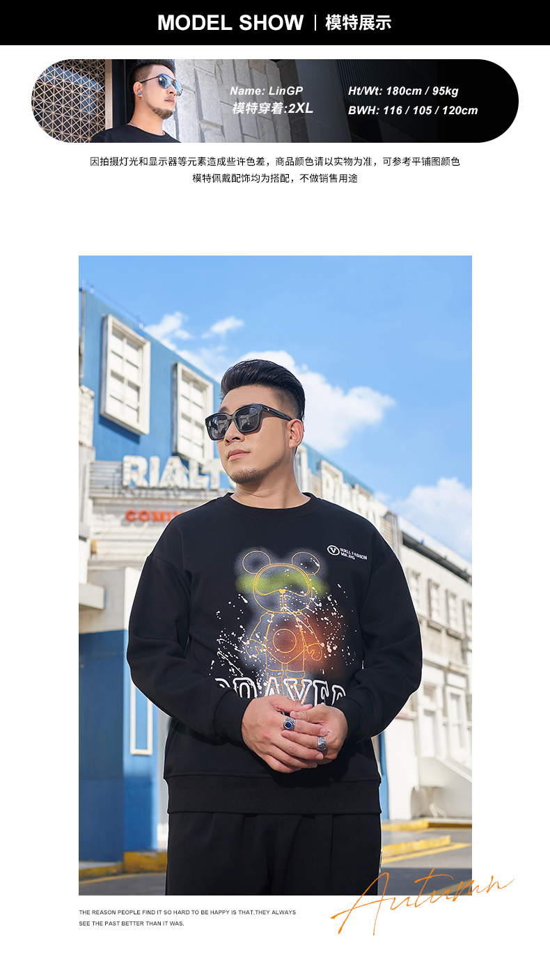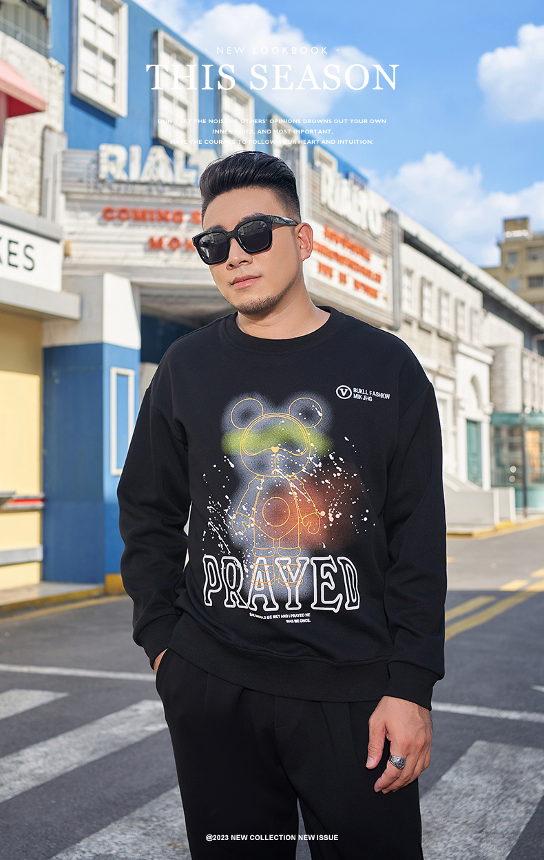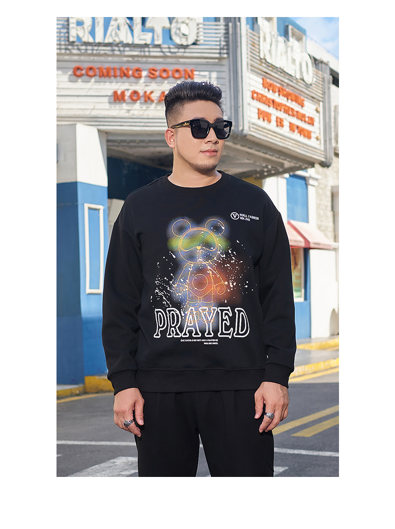 【新款DMH】大依优型大码圆领印花卫衣长袖弹力加肥加大胖子上衣男士T恤肥佬打底男装