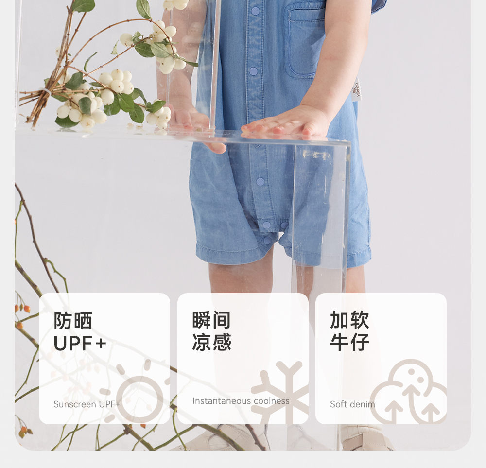 【商场同款】英氏夏季防晒连体衣男宝宝夏季凉感爬服UPF160连身衣