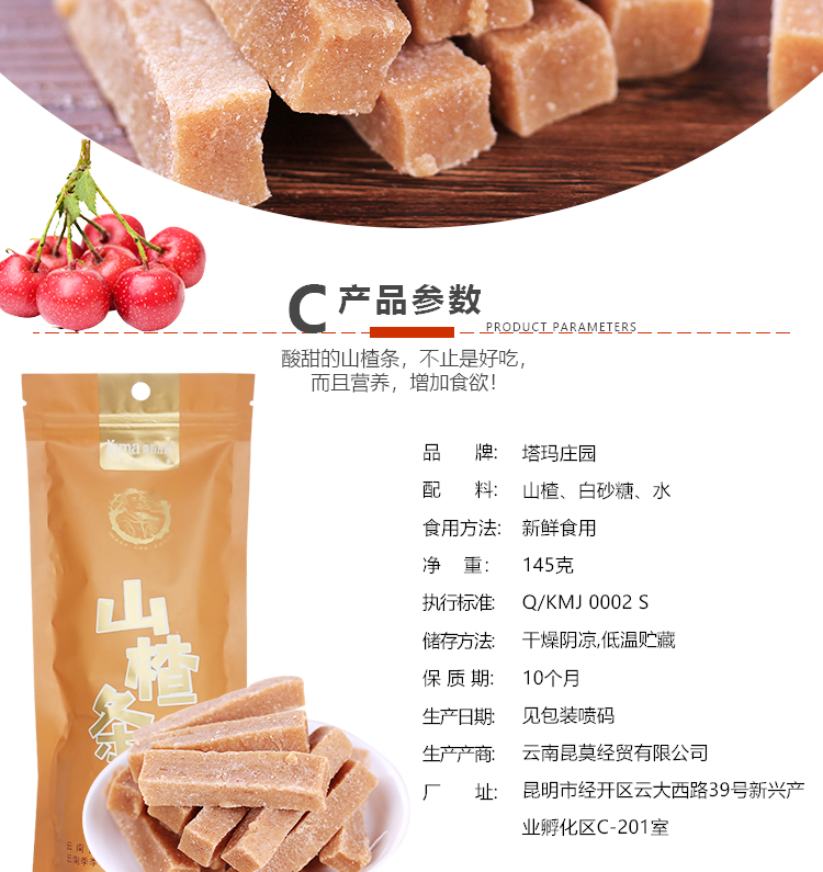 【塔玛庄园】山楂条新鲜果脯果干袋装145g 酸甜软糯肉质鲜活立体有嚼劲丝丝入甜