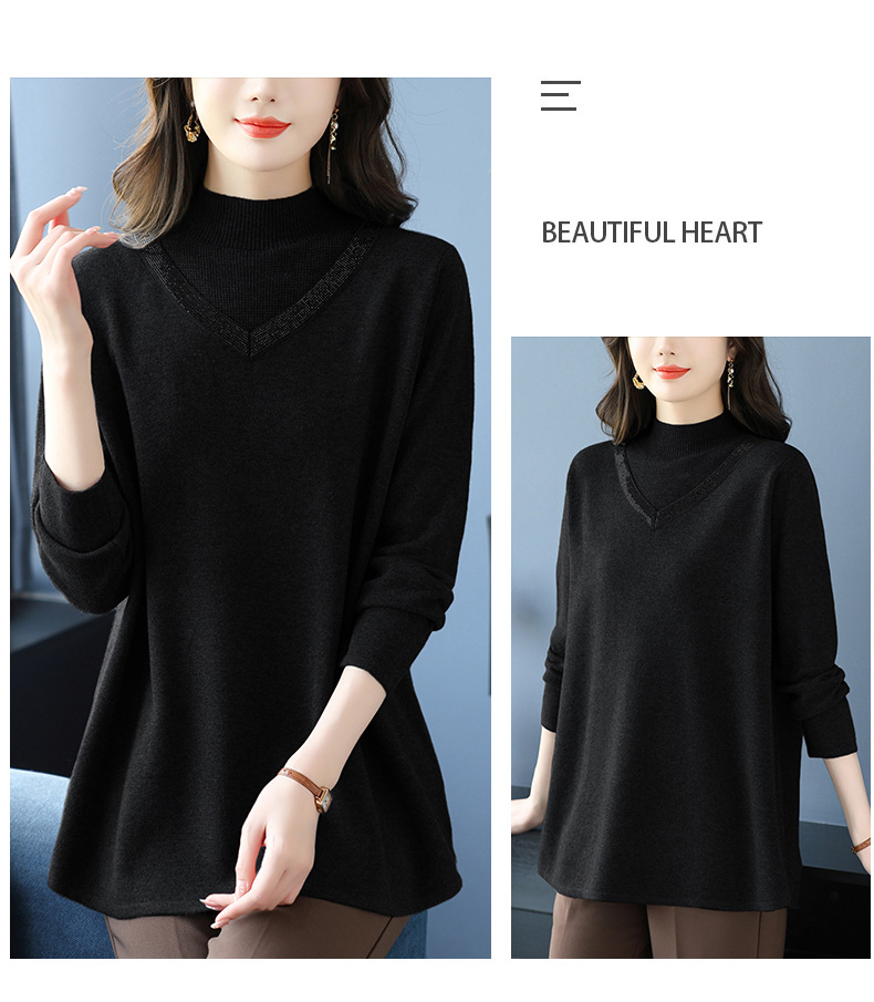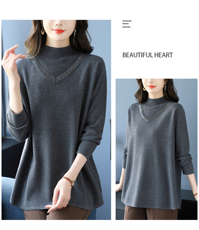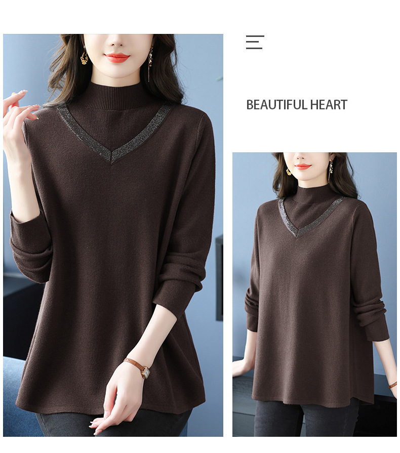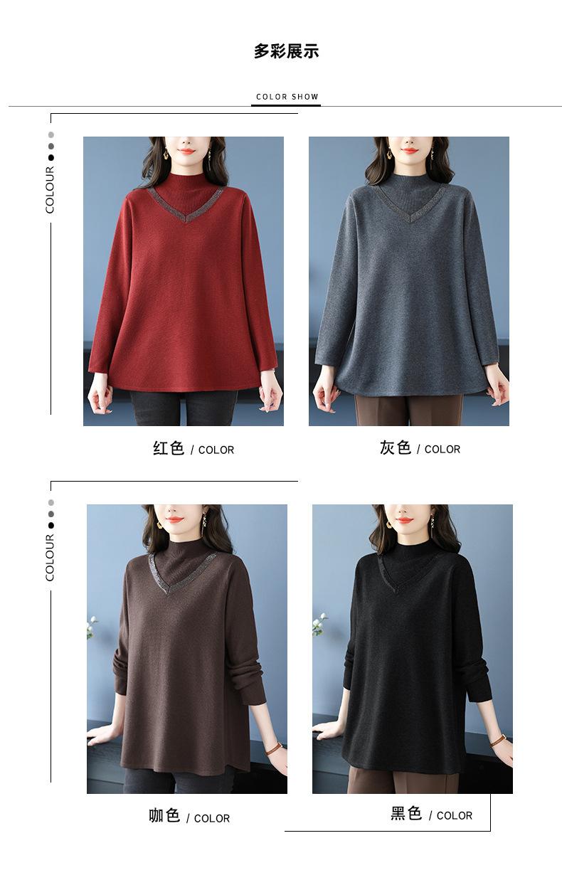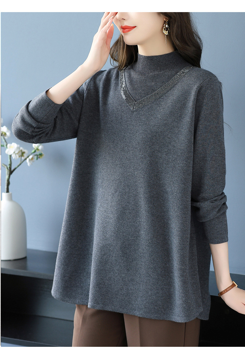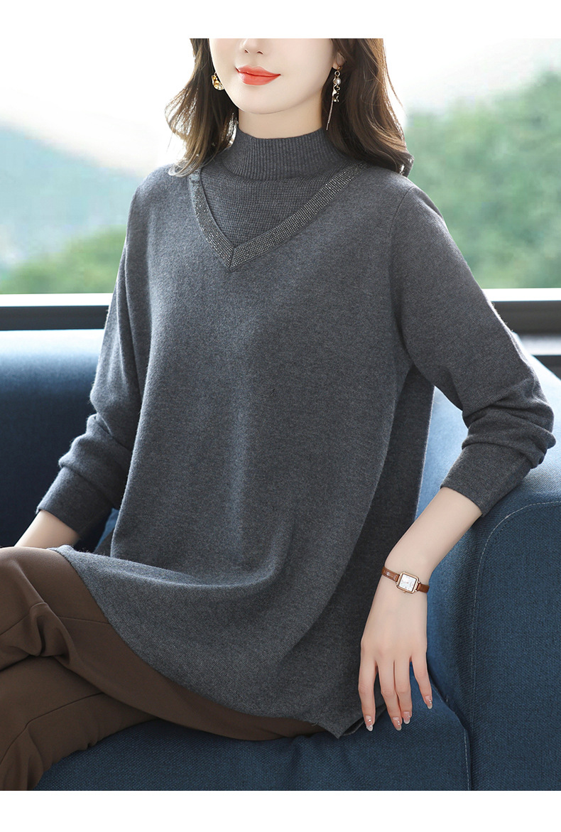 CC 10-7091半高领毛衣烫钻宽松显瘦中长款针织衫