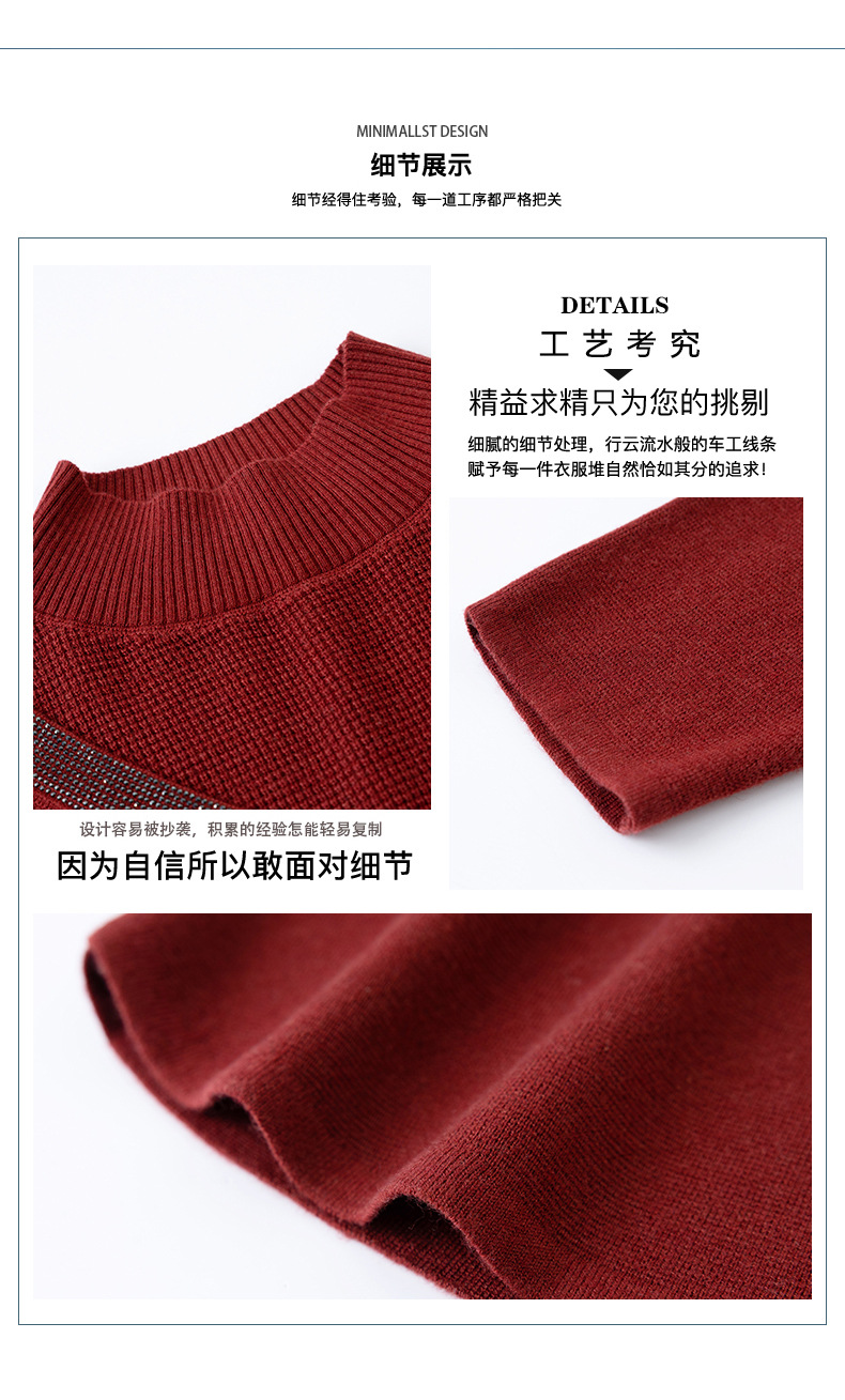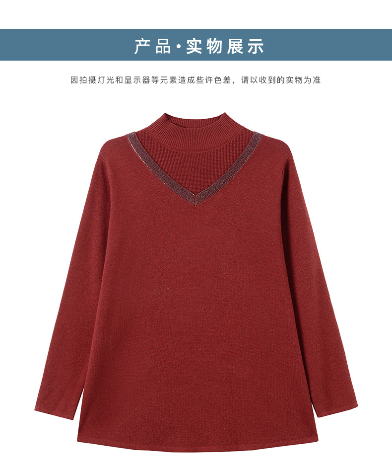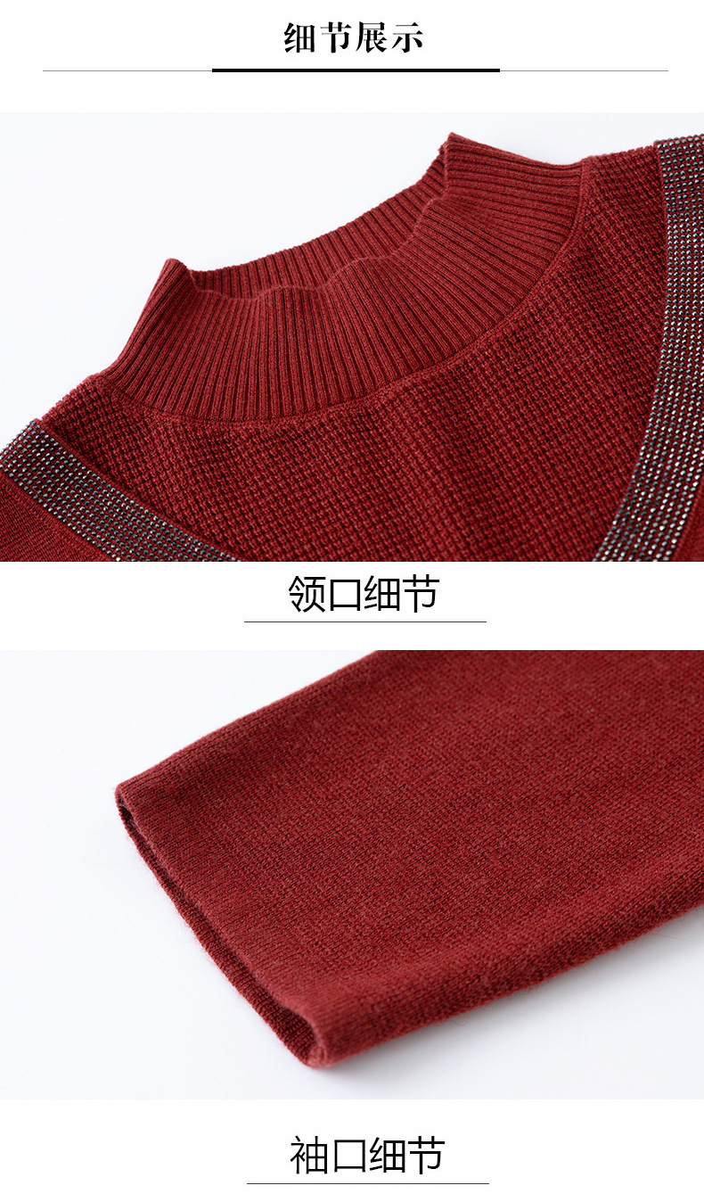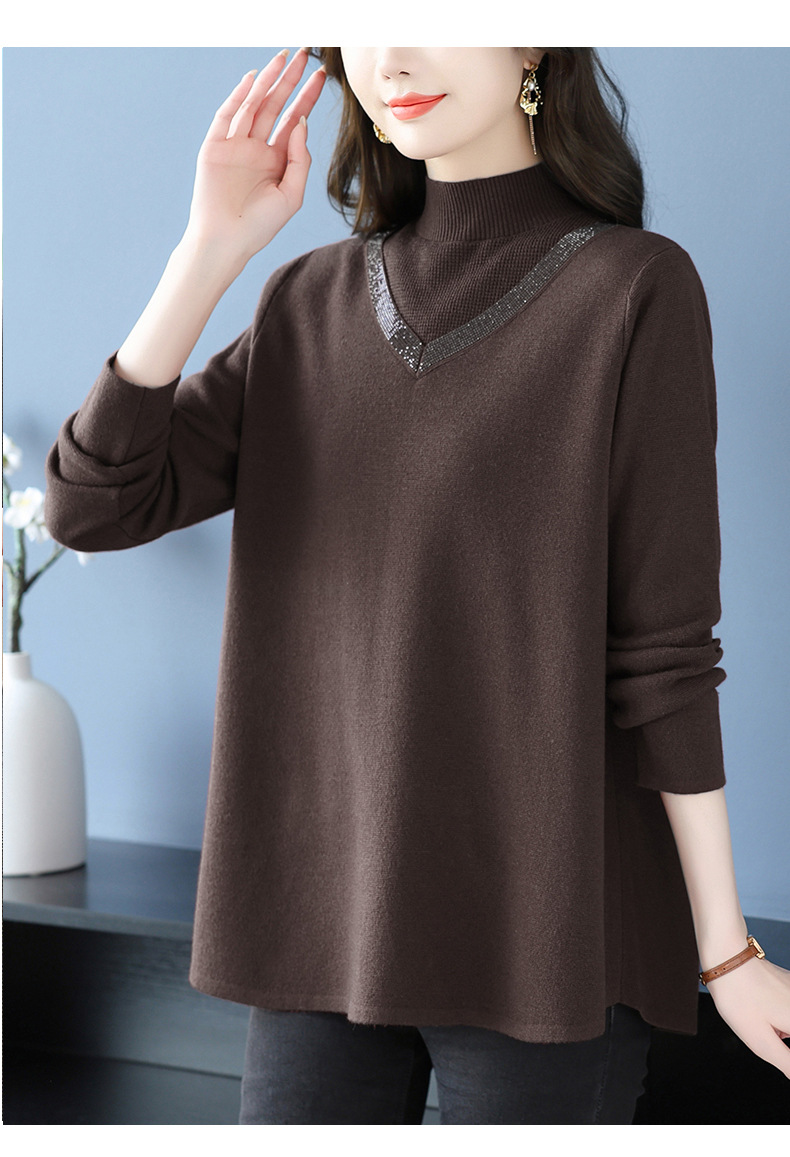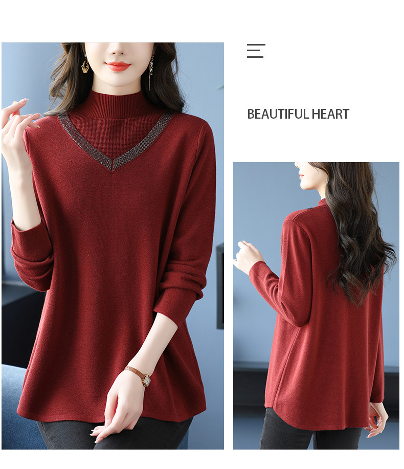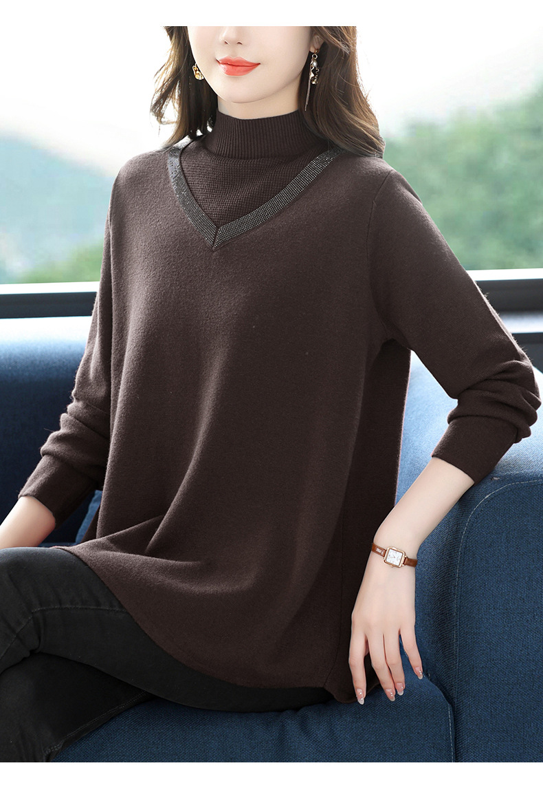 CC 10-7091半高领毛衣烫钻宽松显瘦中长款针织衫