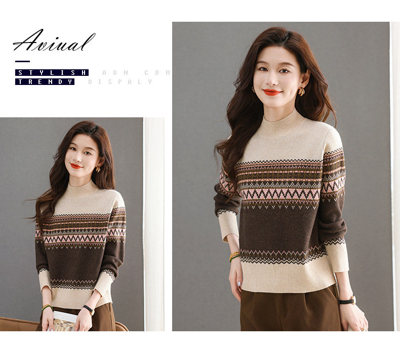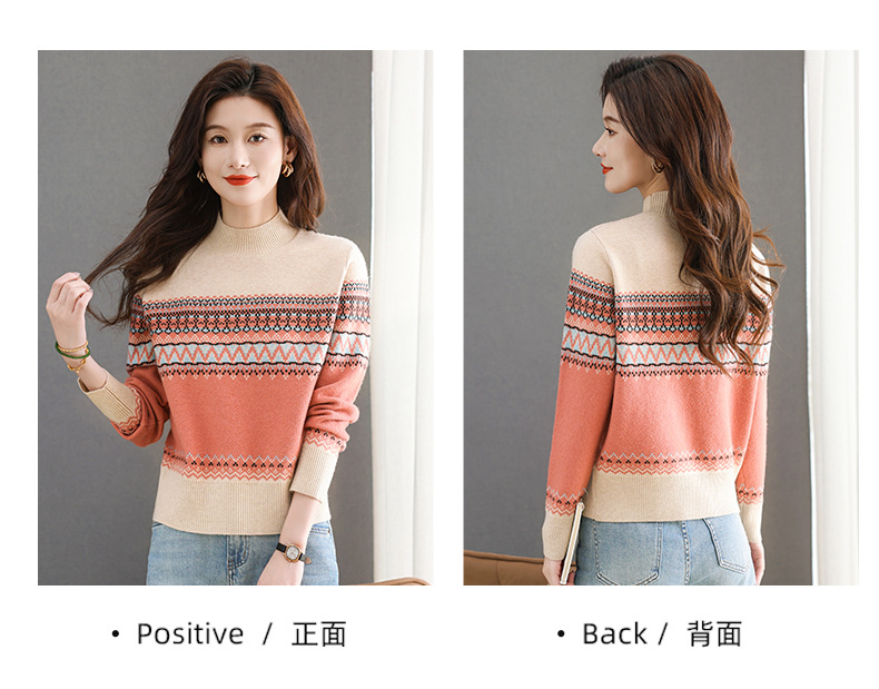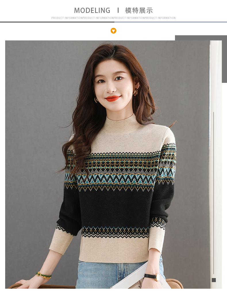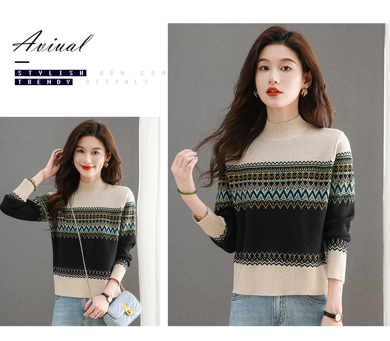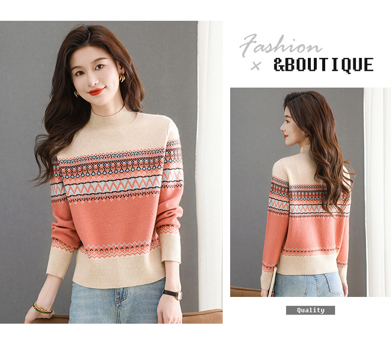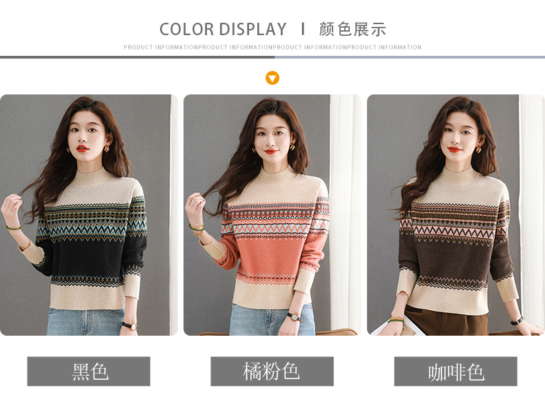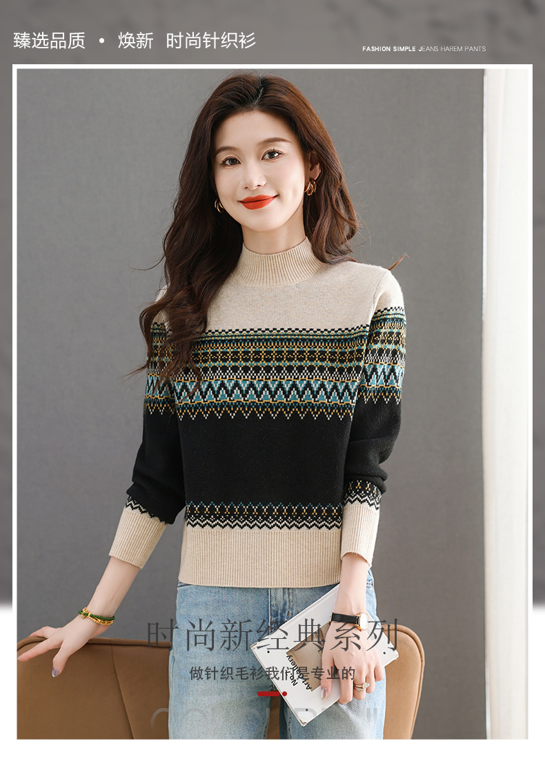 CC-MY-5112内搭打底衫女士2024新款秋冬洋气提花半高领复古时尚毛衣