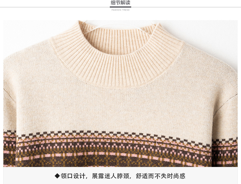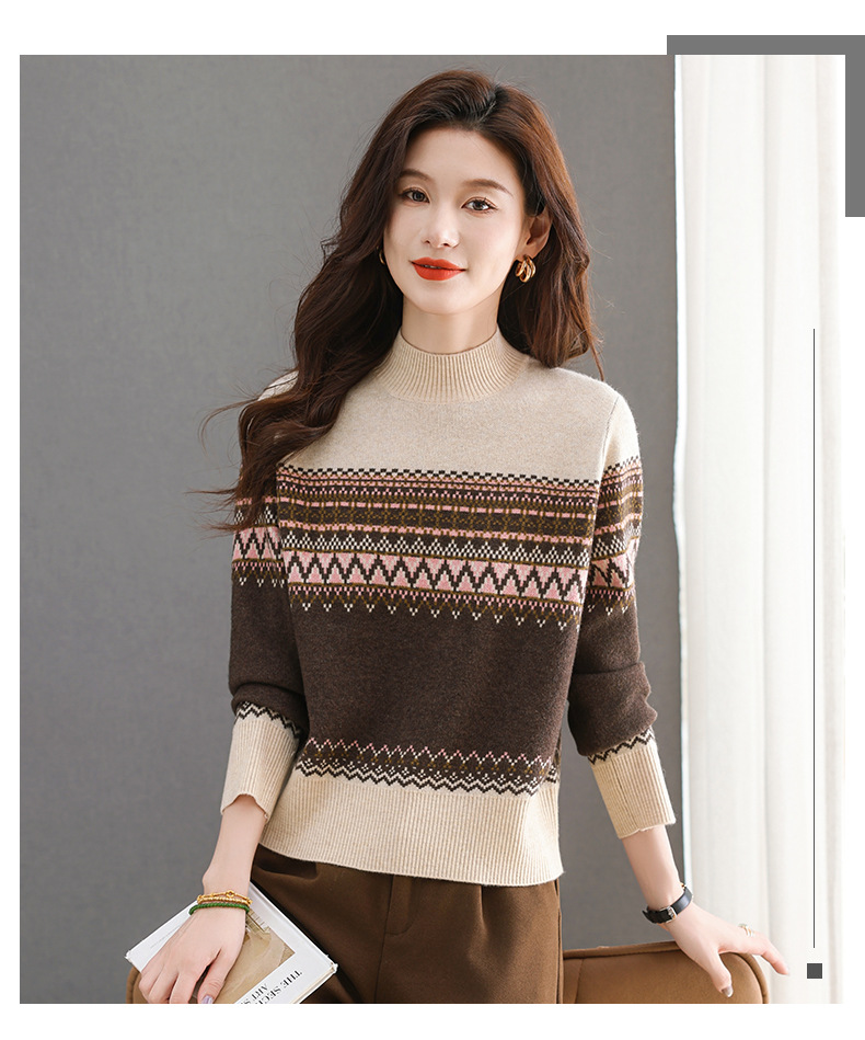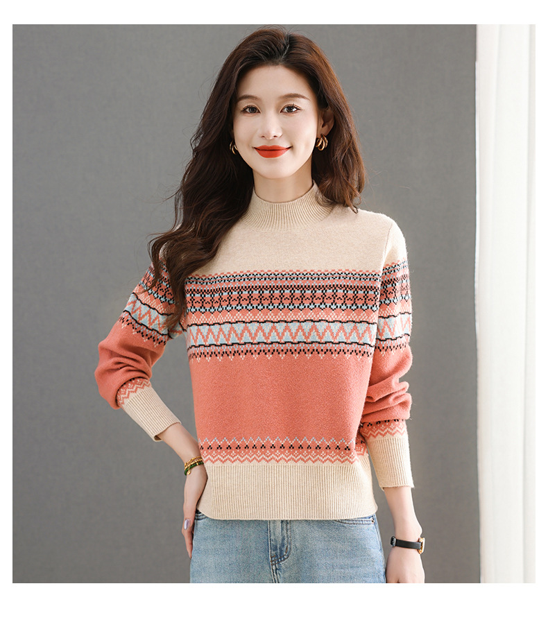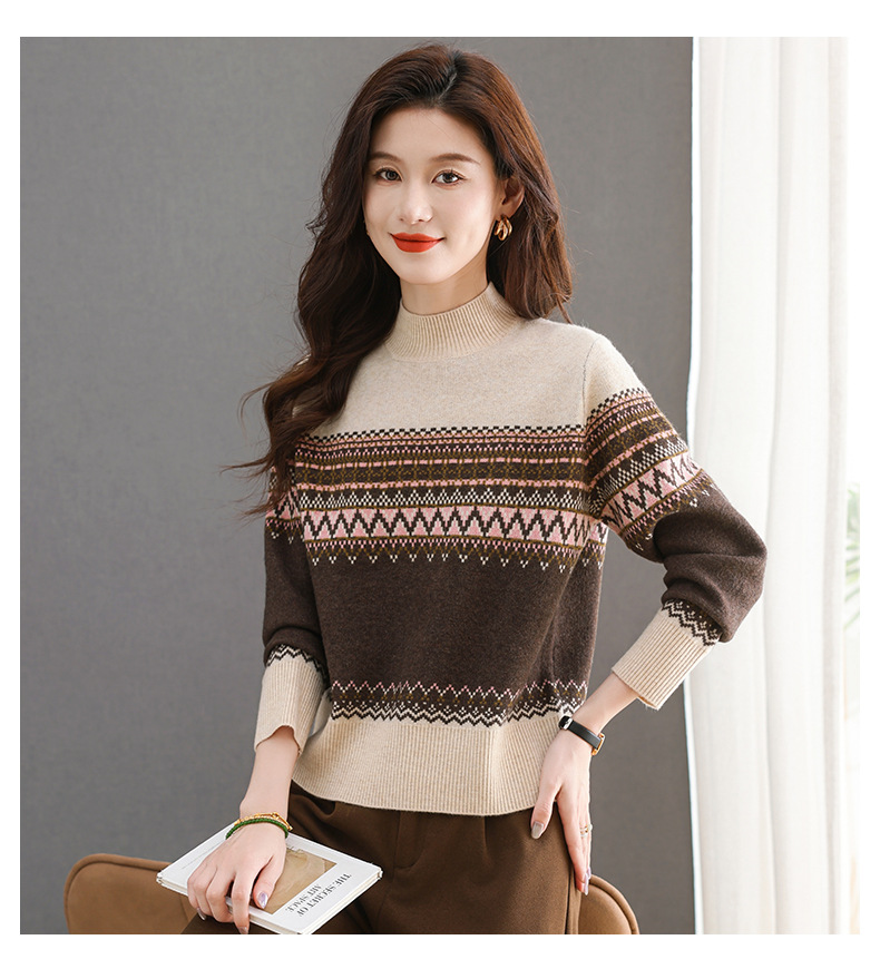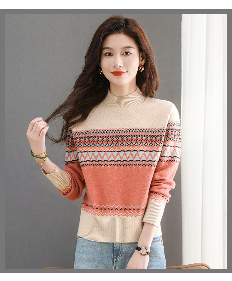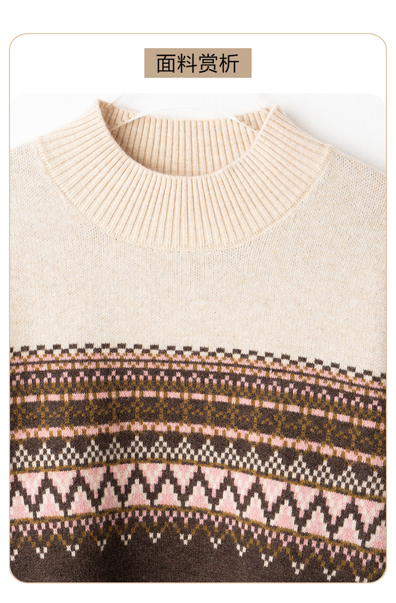 CC-MY-5112内搭打底衫女士2024新款秋冬洋气提花半高领复古时尚毛衣