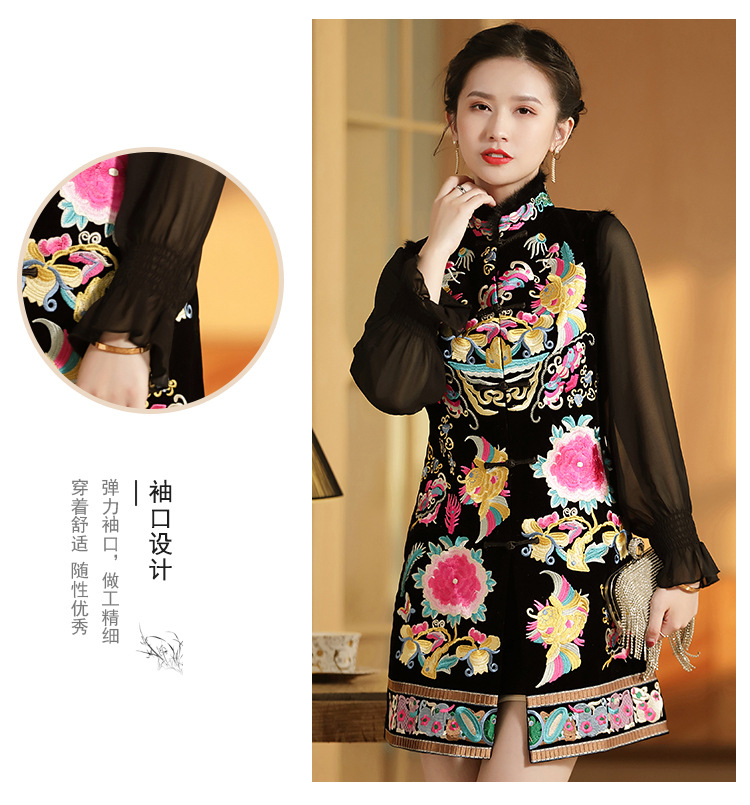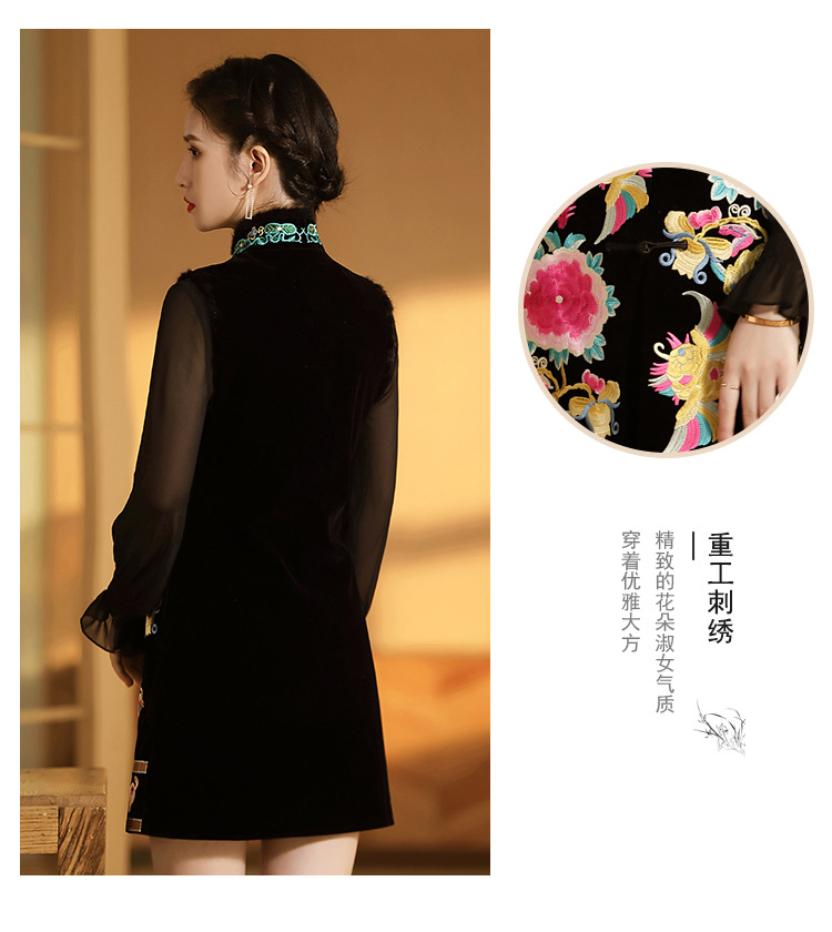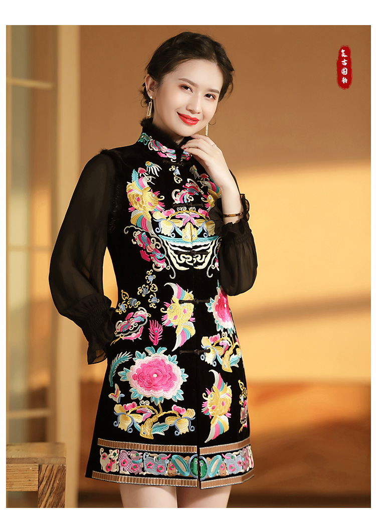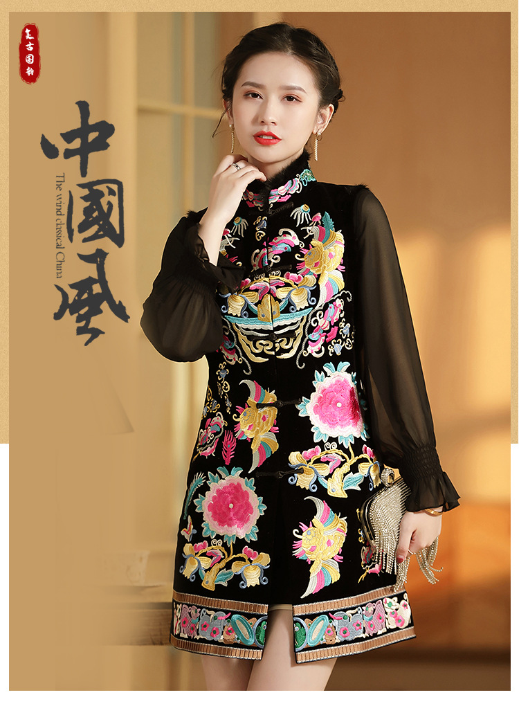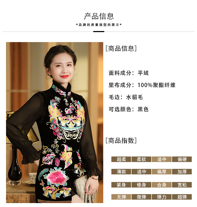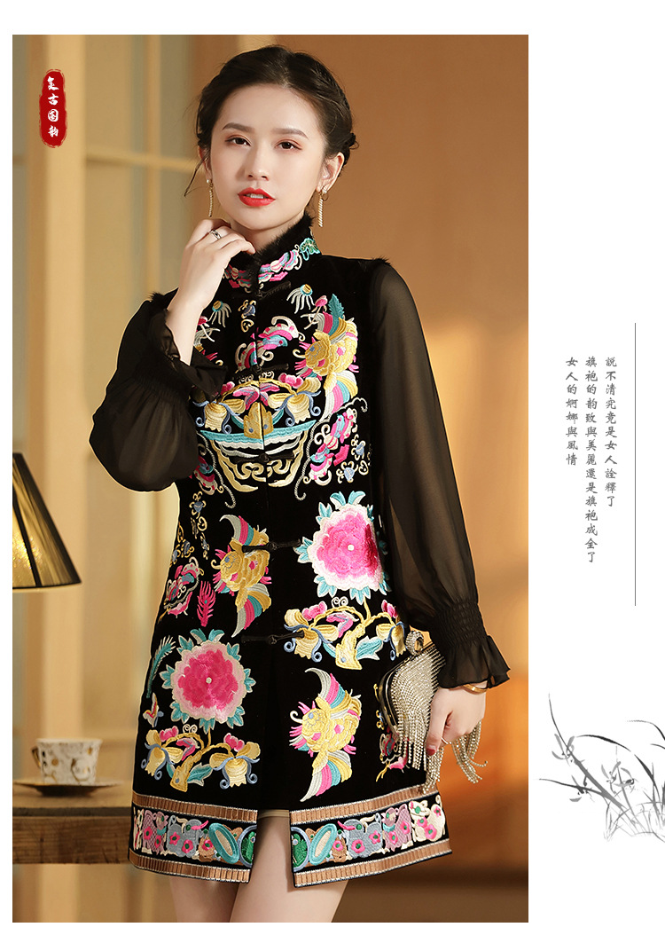 上海旗袍厂AYK-QF-201706219秋冬加厚旗袍裙复古无袖马甲刺绣中长款水貂毛修身连衣裙女