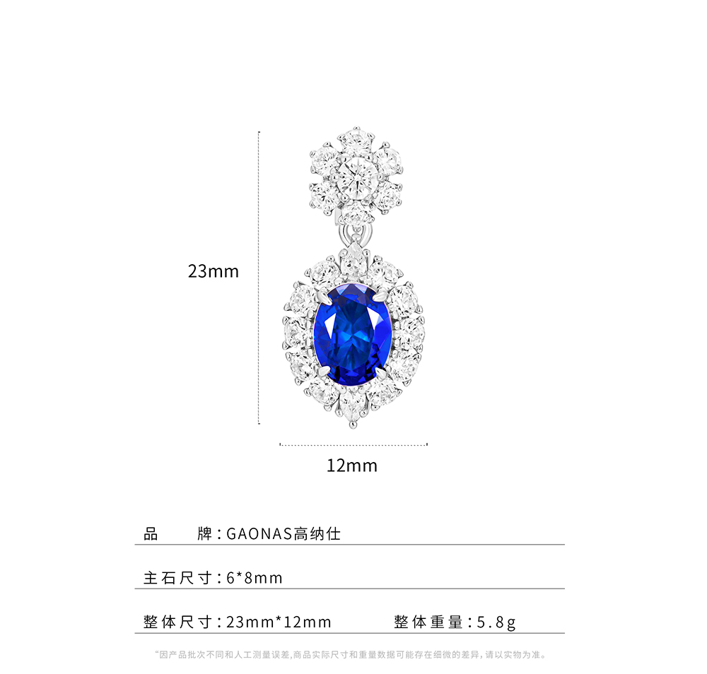 GAONAS 合成尖晶石【矿工的眼泪】经典璀璨隽永蓝色圆形耳环11301EB