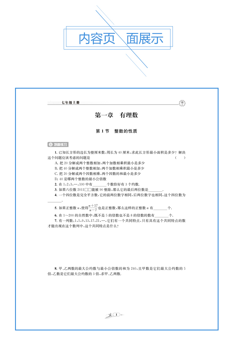 新版 非凡数学 七年级上册