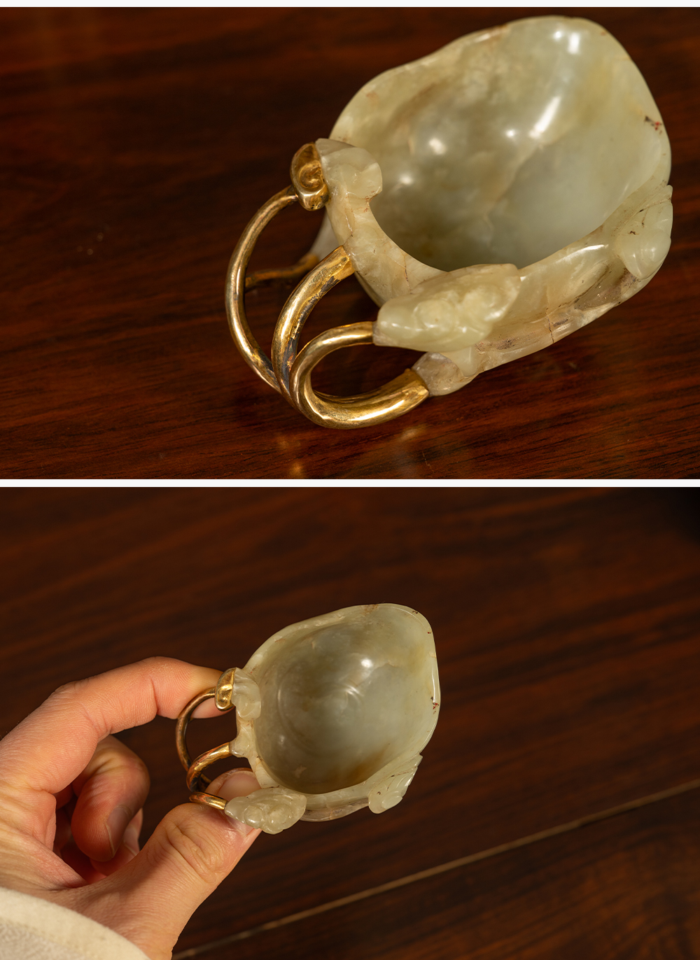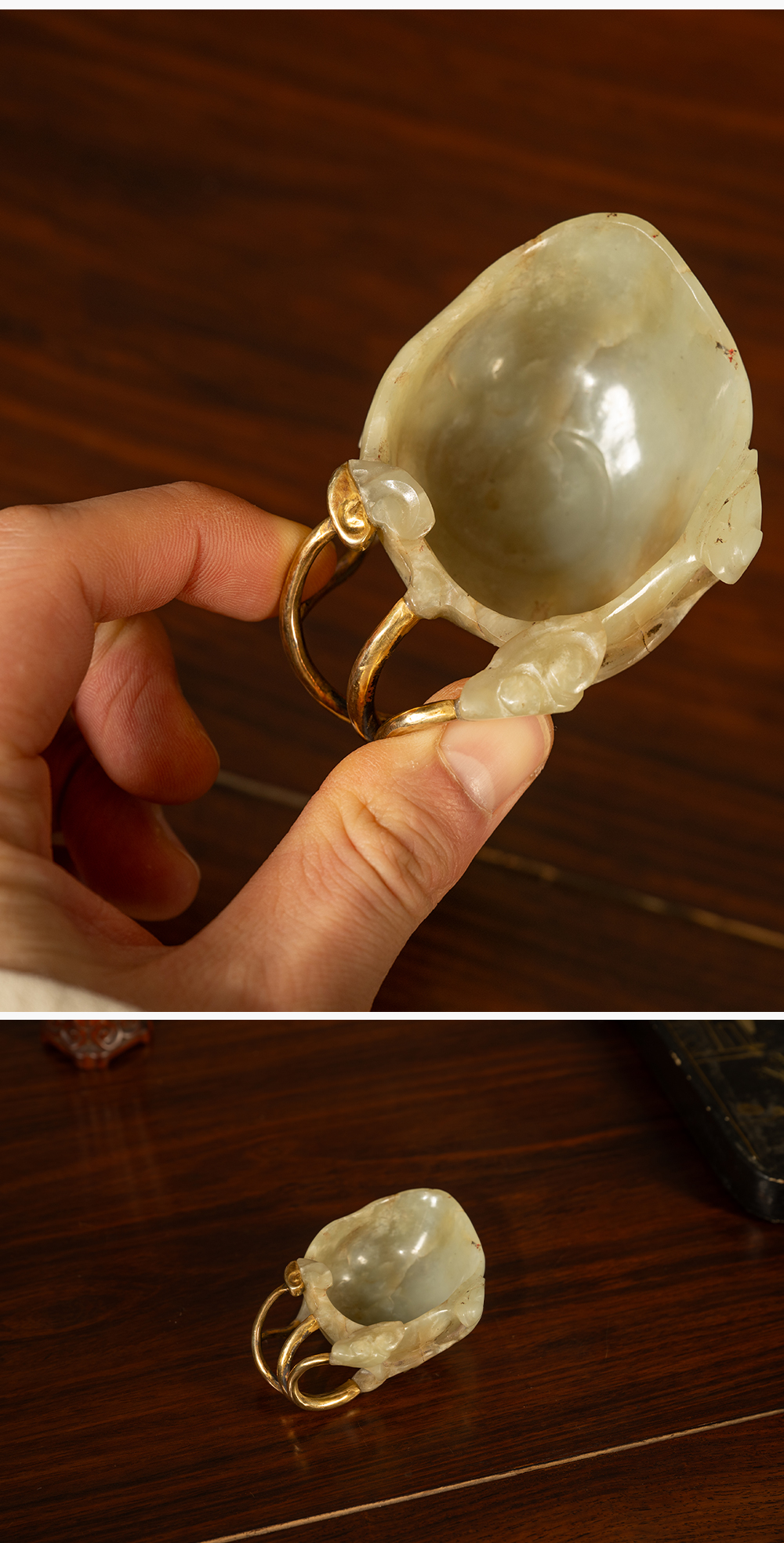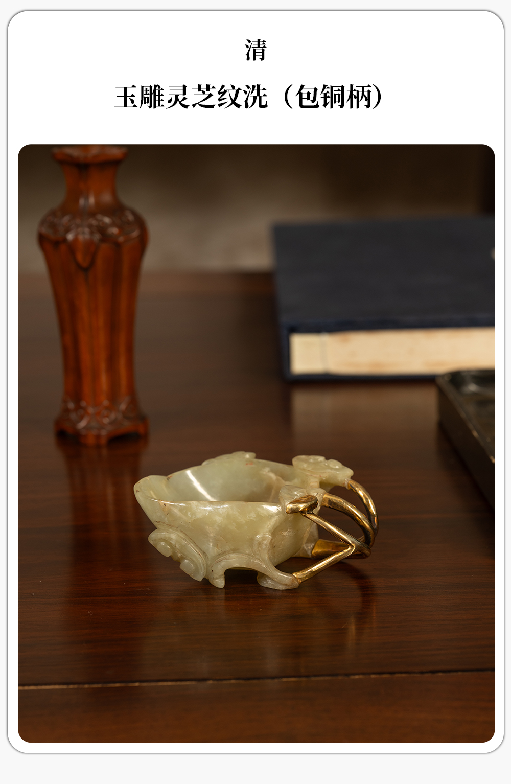 清 玉雕灵芝纹洗(包铜柄)