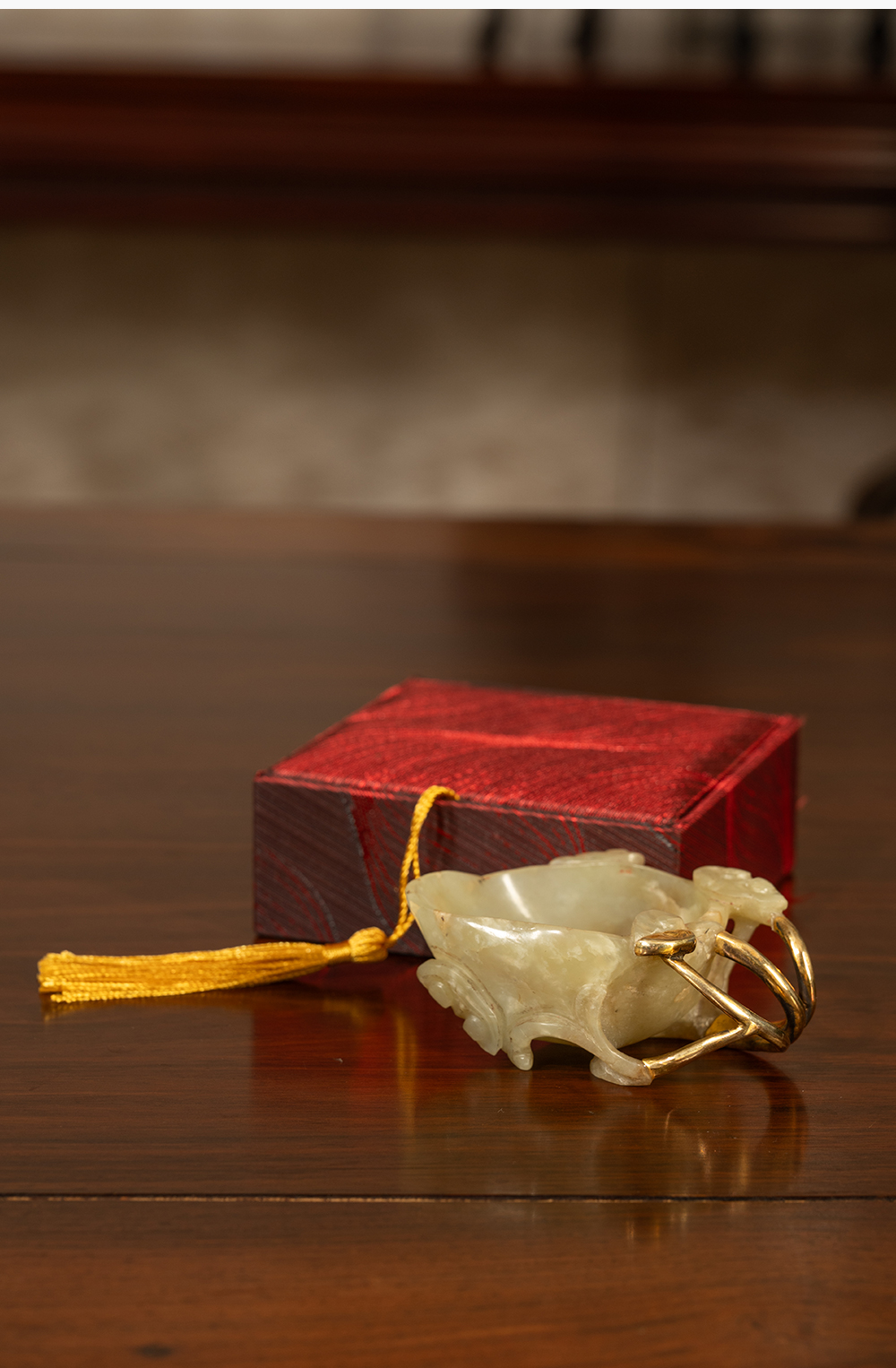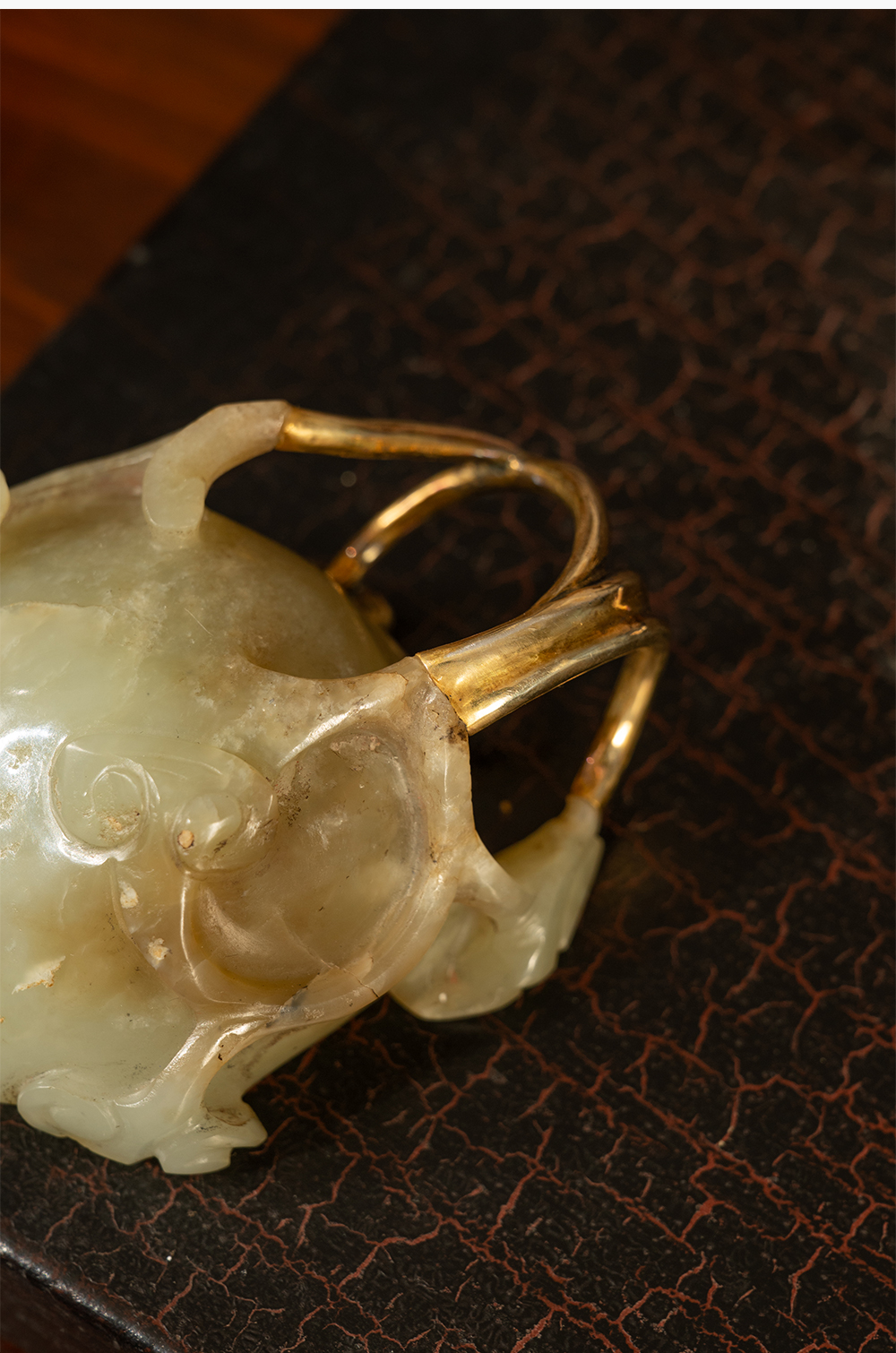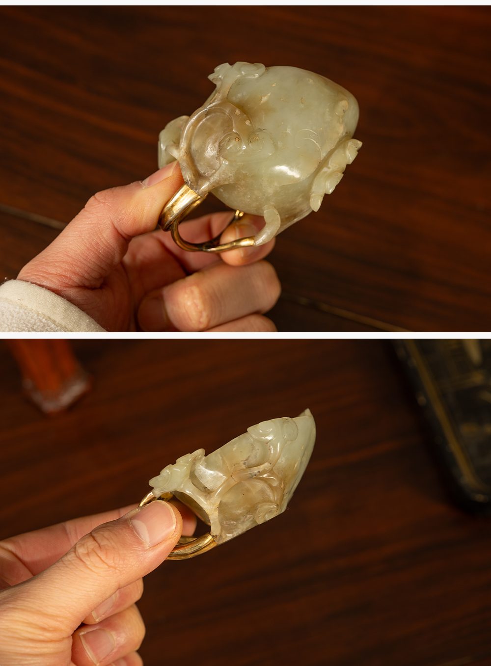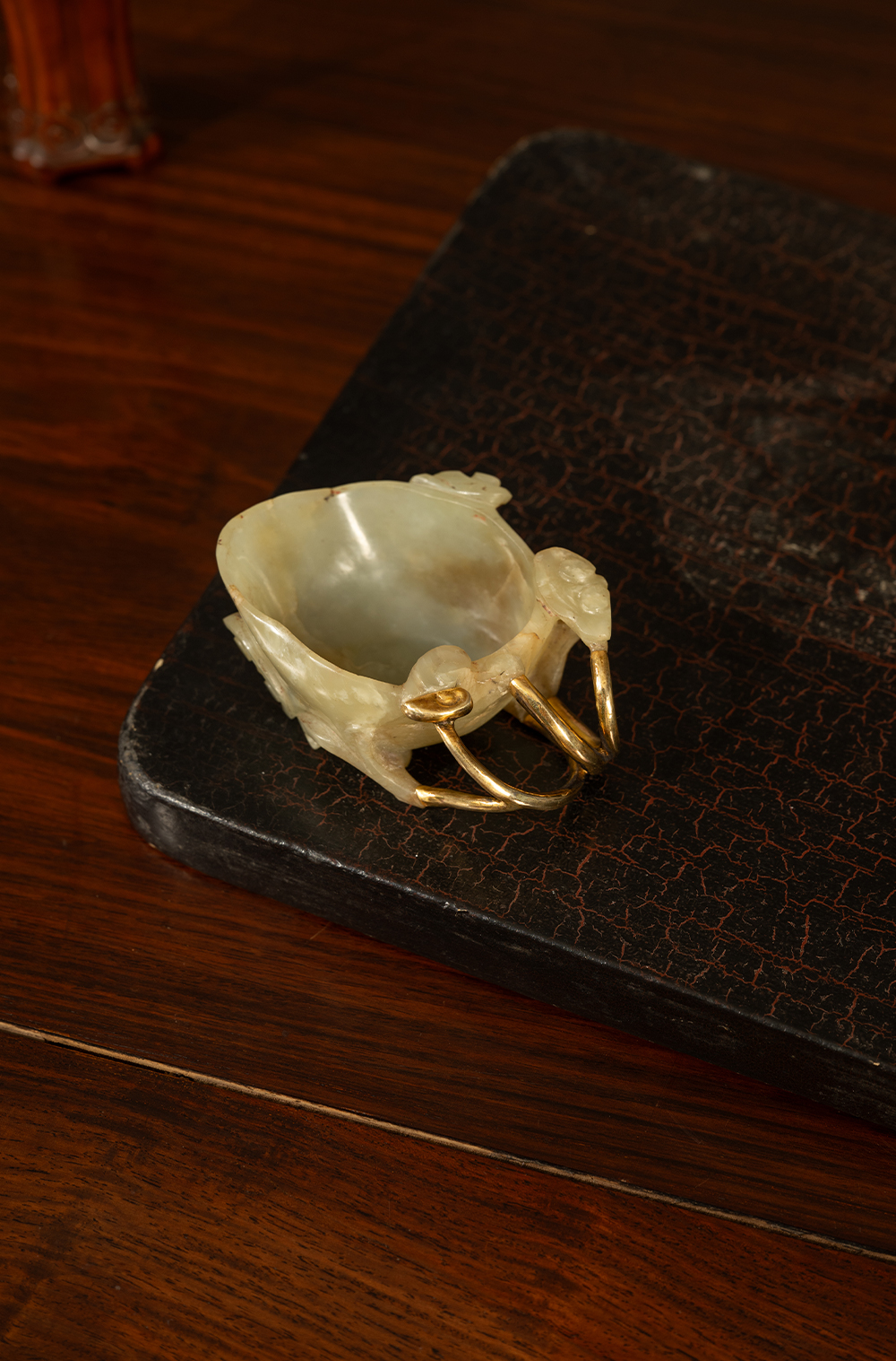 清 玉雕灵芝纹洗(包铜柄)