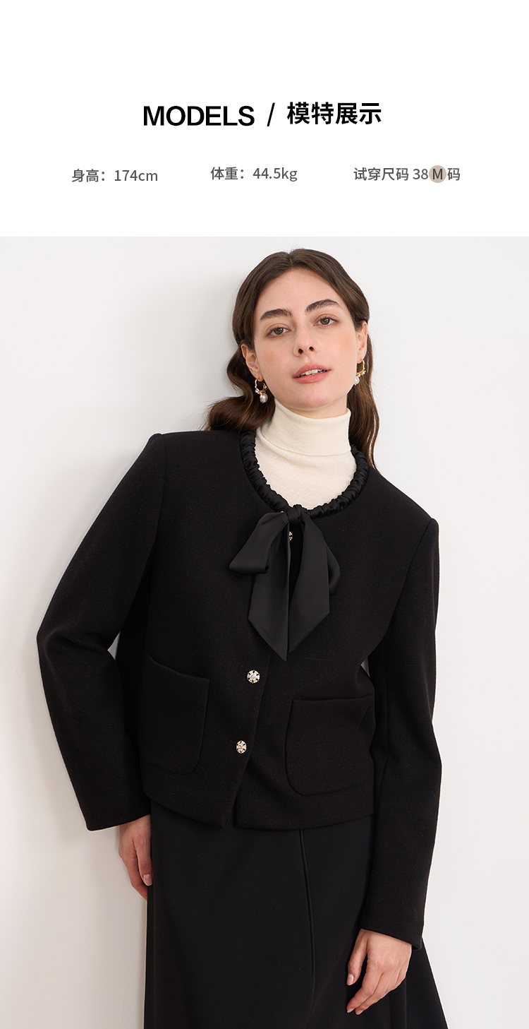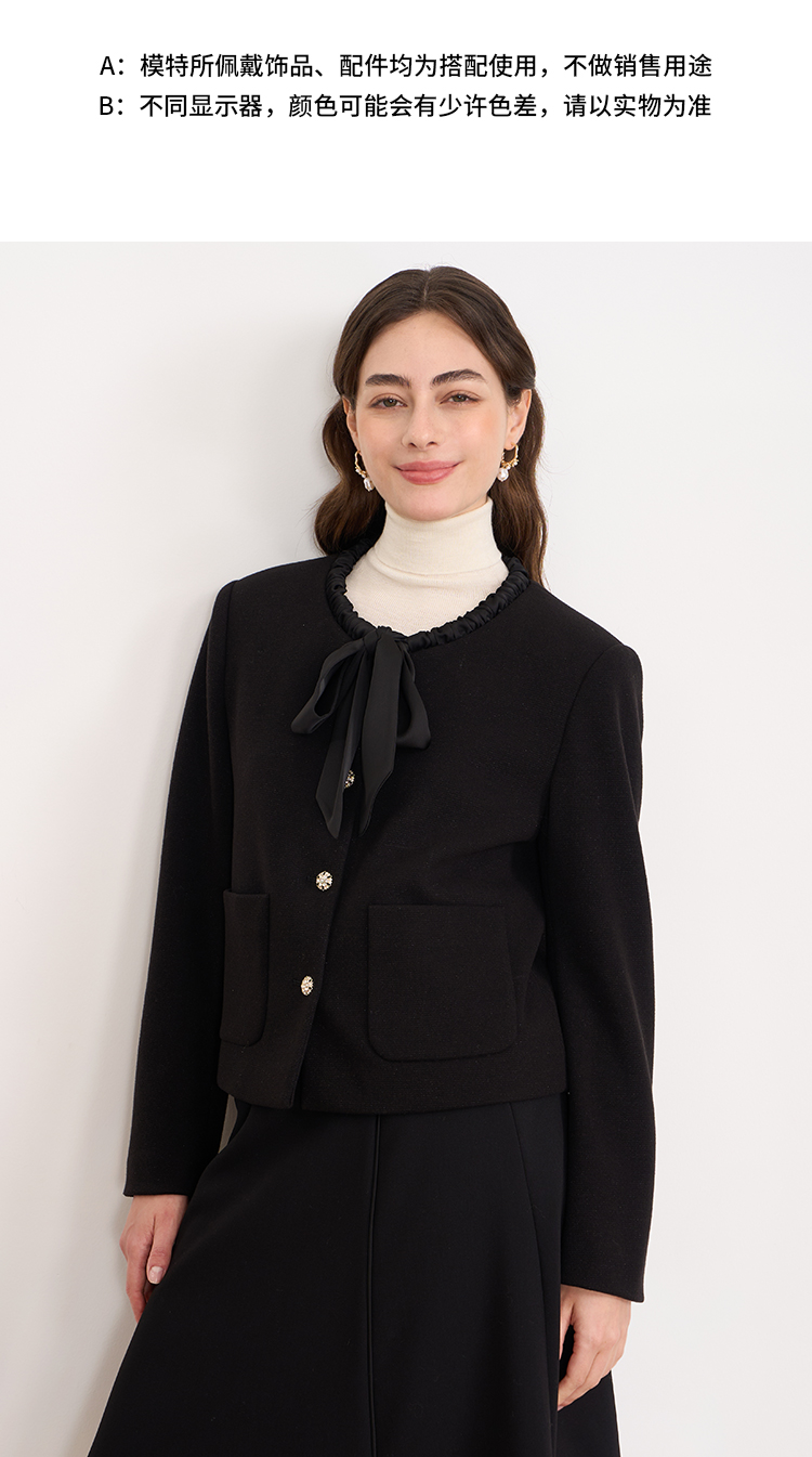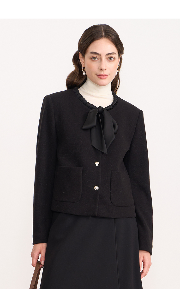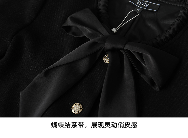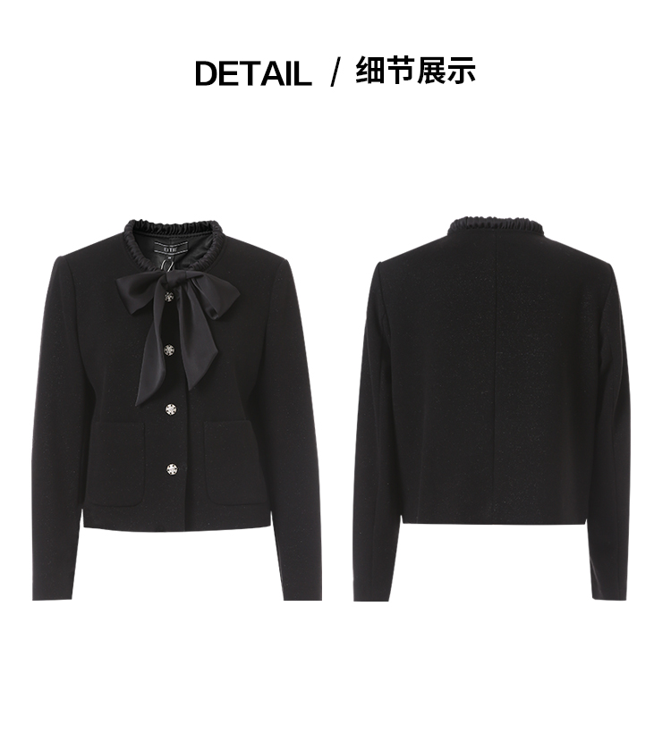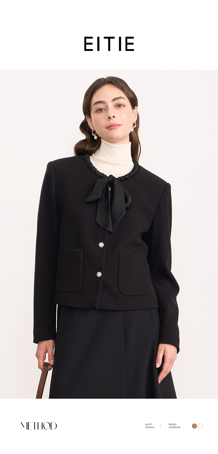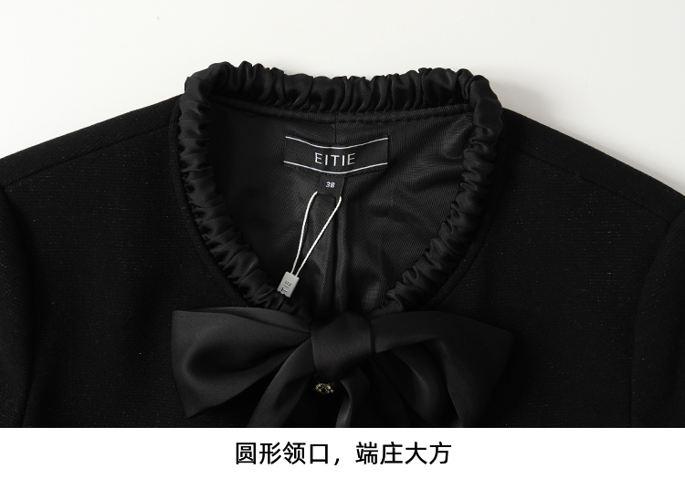 EITIE爱特爱黑色高级感缎面蝴蝶结气质小香风短外套秋冬新款D2503913