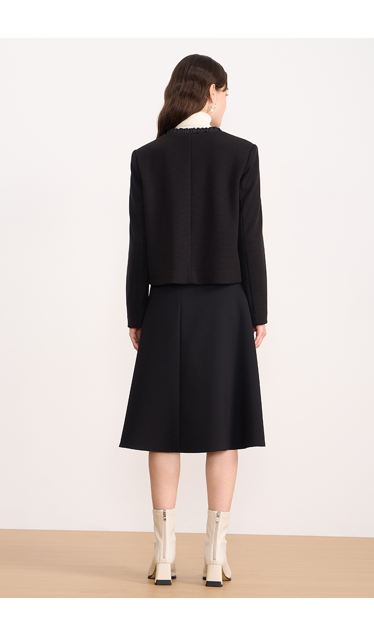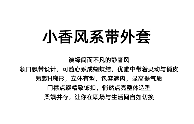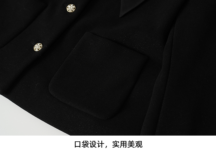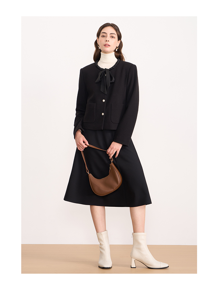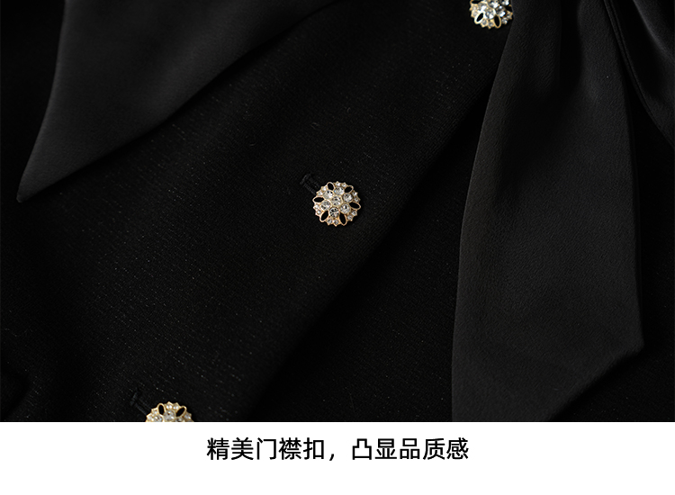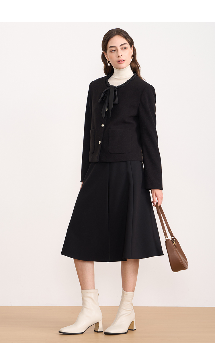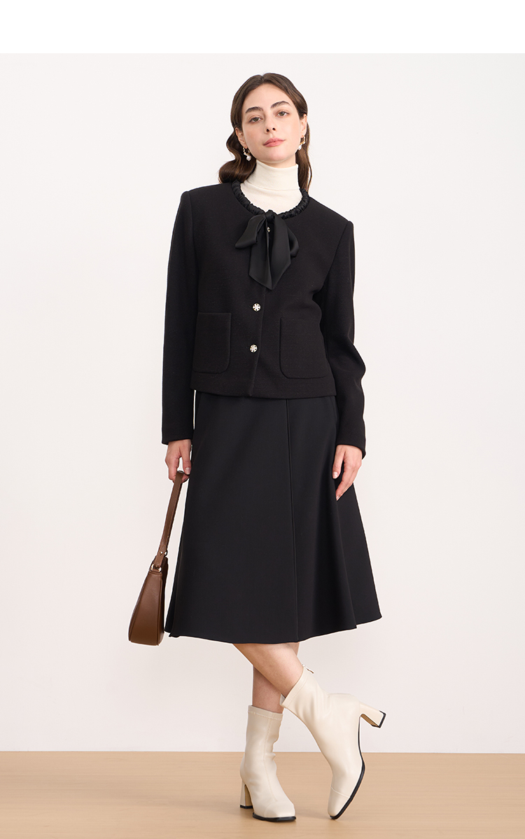EITIE爱特爱黑色高级感缎面蝴蝶结气质小香风短外套秋冬新款D2503913