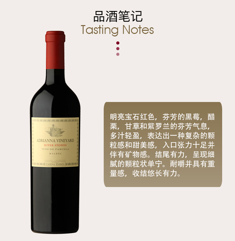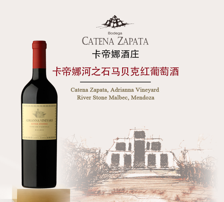 【满分酒】卡帝娜安娜园河之石马贝克红葡萄酒 Catena Zapata Adrianna Vineyard Malbec “River”