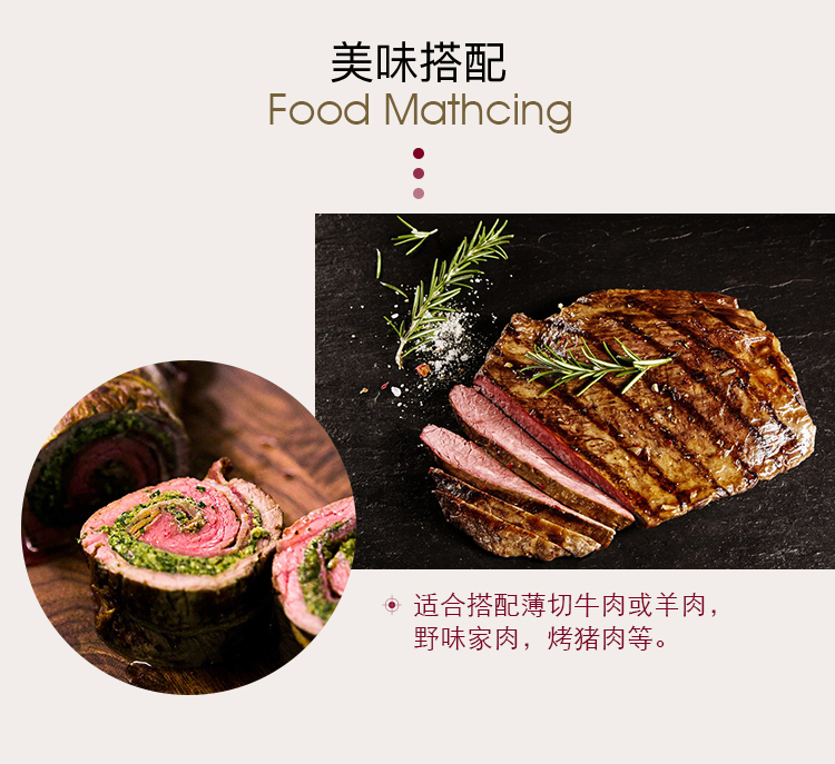 饱满的红色水果味,带有一丝黑橄榄、香料、湿石和木槿的味道。